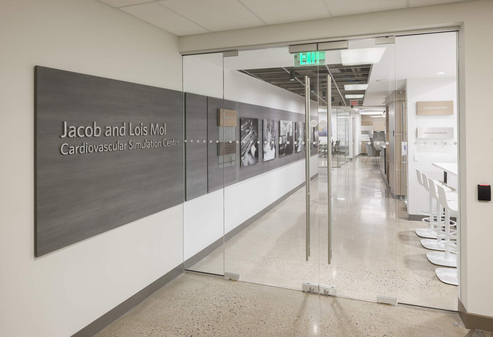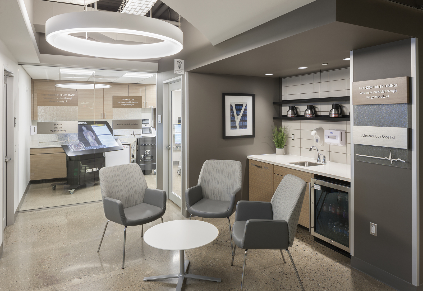 The 3,000 square foot renovation added learning, laboratory and work spaces to the cardiovascular simulation lab area and incorporated an administrative office design. The center allows physicians and medical teams to practice complex procedures and surgeries and test out new medical devices and equipment.