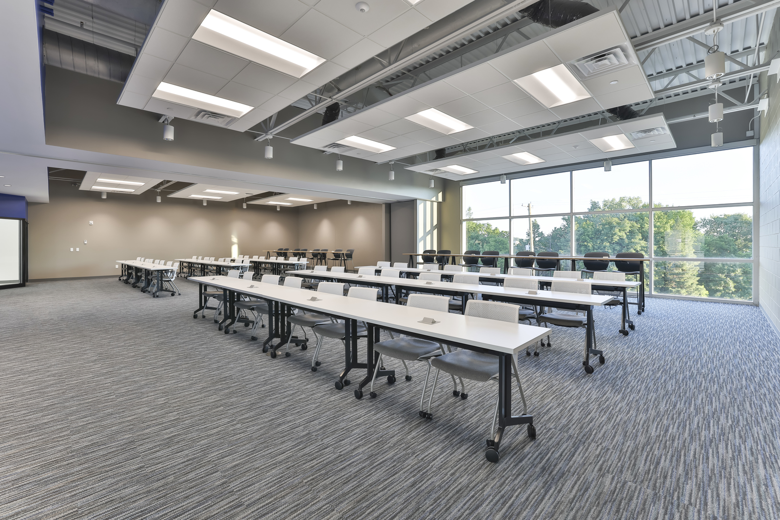 The Autocam Medical facility has an architectural precast structure, steel joist and deck, and membrane roof. The office is surrounded by architectural metal panels and white epoxy flooring is used in the building. It features an energy-efficient design with solar generating 25% of its energy needs and reuses machine heat.