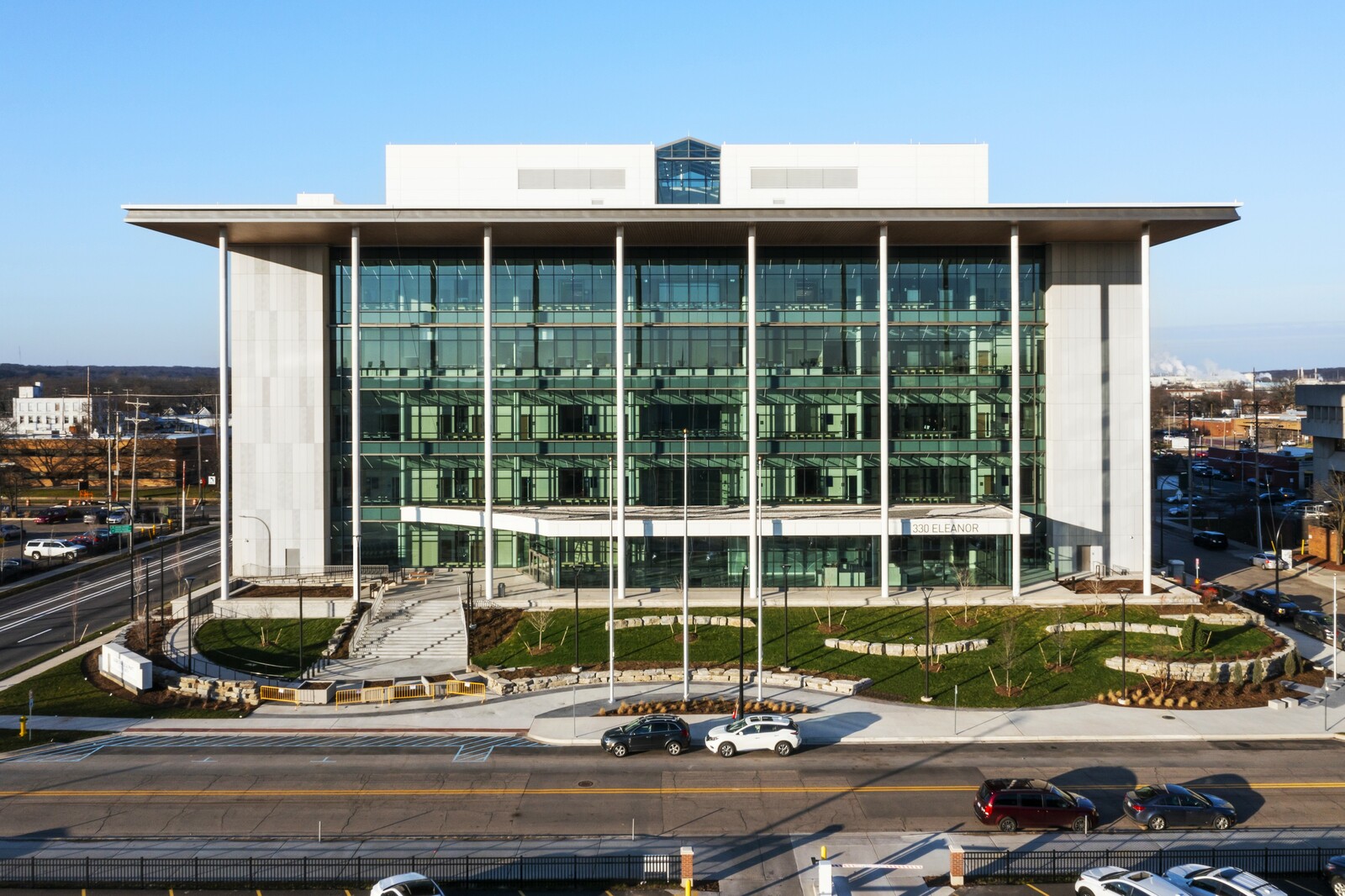 This project included ultra-high performance concrete wall panels, insulated metal wall panels and glass clad rainscreen panels. It also included a monumental skylight, a multi-story interior atrium curtainwall, and four-sided structural glazed curtainwall systems.