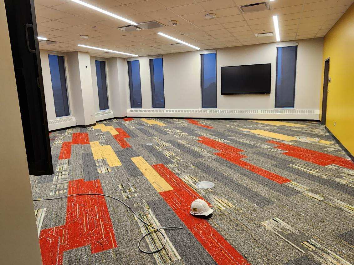 The inclusion of carpet, rubber treads, risers, static dissipative tile, and luxury vinyl tile showcases a blend of functionality and aesthetics with this project. With the incorporation of 11 different carpet tiles and patterns, the design aspect was elevated, adding depth and character to the environment.