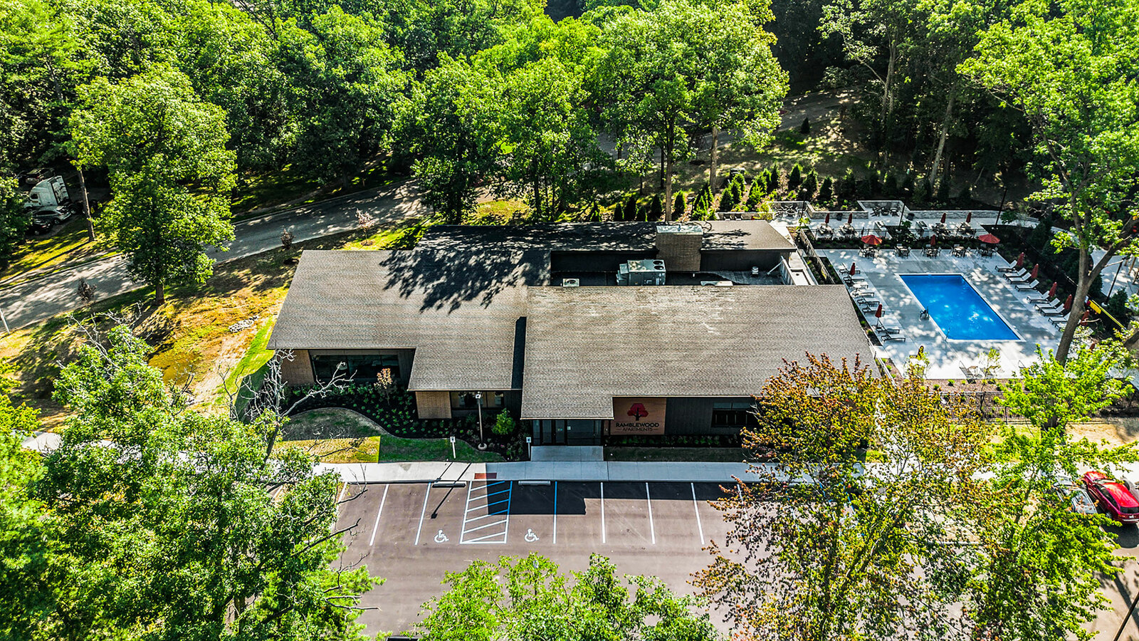 The project includes a 10,690 sq ft building and site improvements like parking lots, pickleball courts, pavilion, playground, firepit areas, grilling stations, and a pool deck. The building, constructed with structural steel framing, offers leasing offices, a fitness center, co-working spaces, and an open clubhouse room.