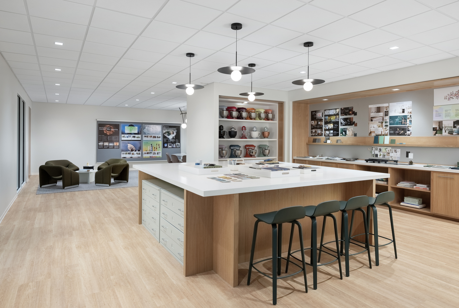 This 76,000 SF showroom facility is utilized to present Whirlpool’s latest technology and products to customers, so it was important that the space complemented the innovation behind the scenes. Adorned with high-end finishes throughout, the design theater and showroom buildout lent itself to a remarkable space.