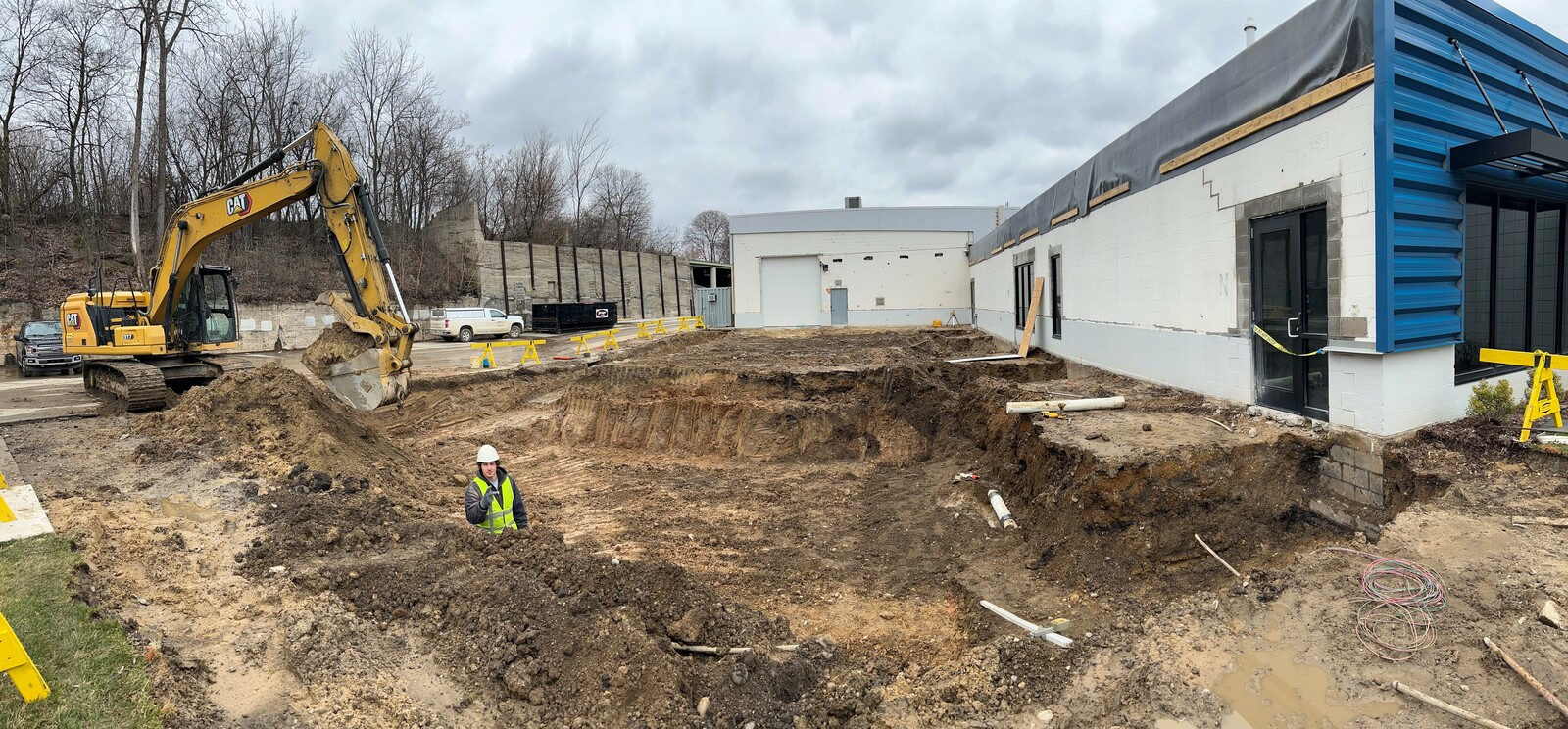 This project's scope included concrete removal, foundation excavation, sand backfill, drain tile installation, concrete floor prep, and parking lot grading. Despite the challenges, working with other contractors on WMCI was enjoyable, and the finished product provided a high-quality result for the school.