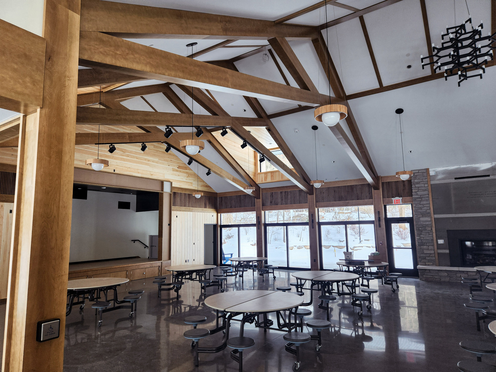 This multi-purpose building is outfitted with a state-of-the-art dry system, vertical turbine diesel fire pump, underground tank, and nitrogen generator. Installation required working around aesthetic architecture to conceal piping, using seven types of sprinkler heads to accommodate variable ceiling heights, and accommodating a tight schedule for opening day.