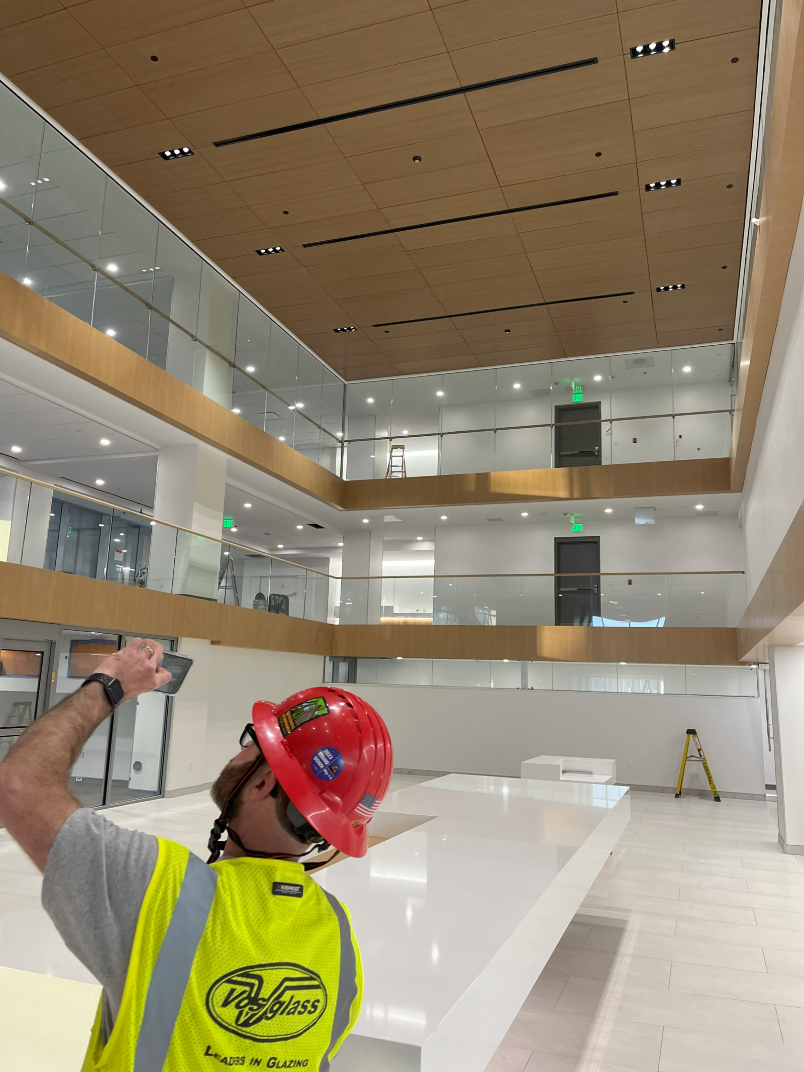 Corewell Ambulatory featured 125 aluminum doors, 5,600 SF of half-inch tempered glass, and a five-story handrail system. Completed in 8,000 man hours, the project highlighted Vos Glass’s precision and coordination in delivering high-end interior glazing systems with exacting standards for safety, aesthetics, and quality.