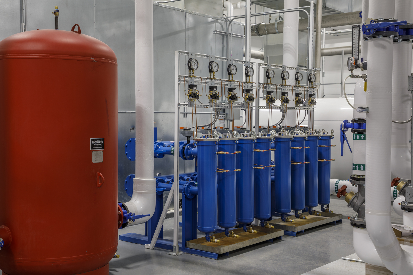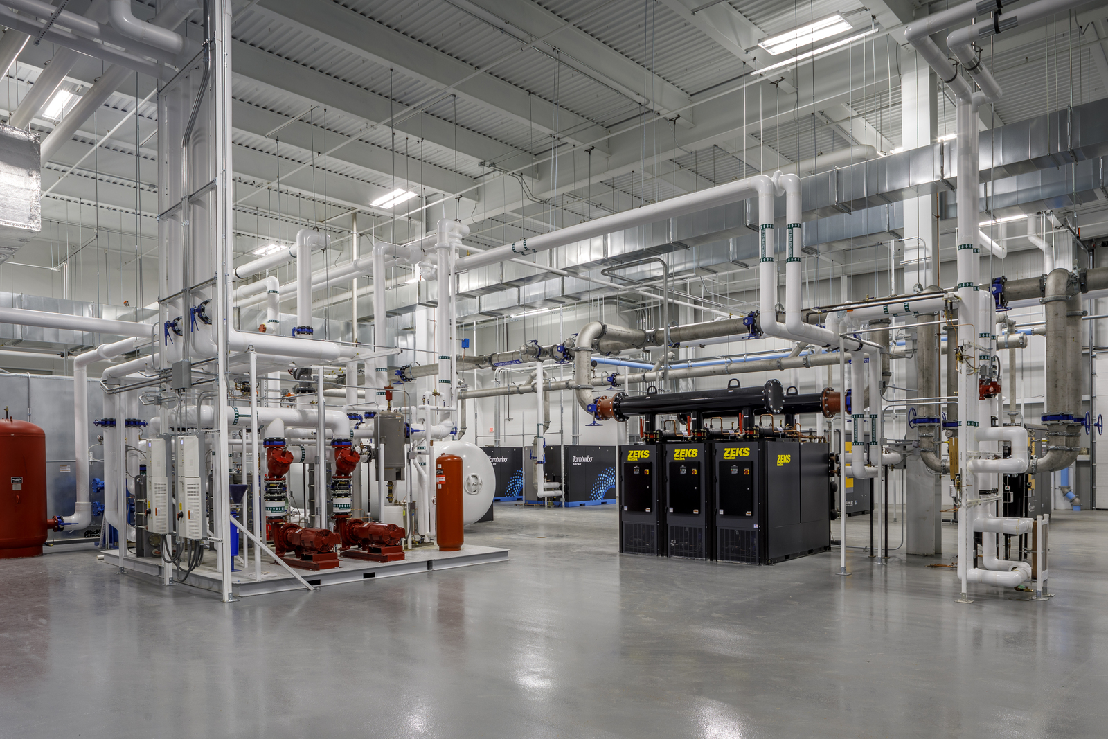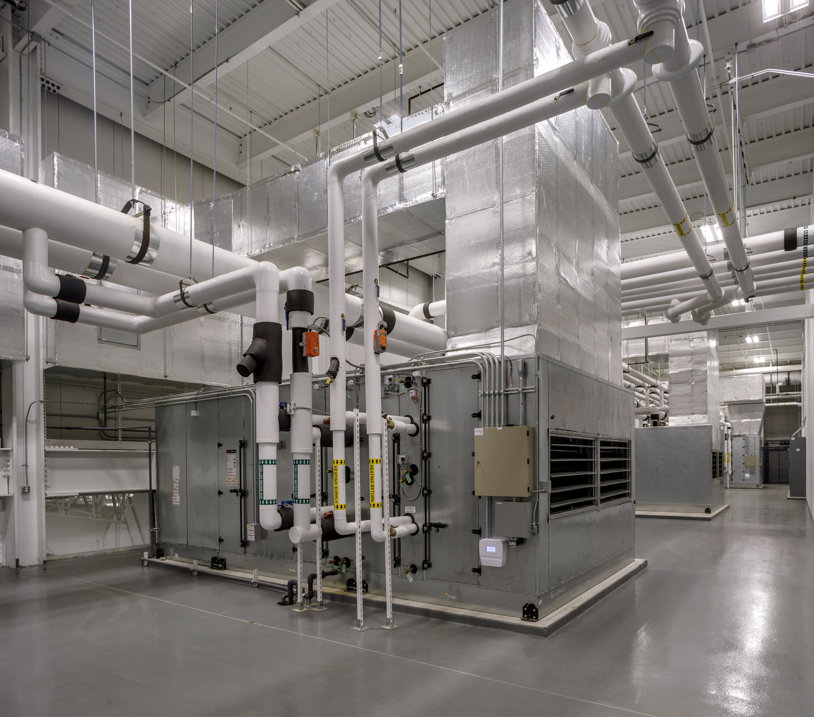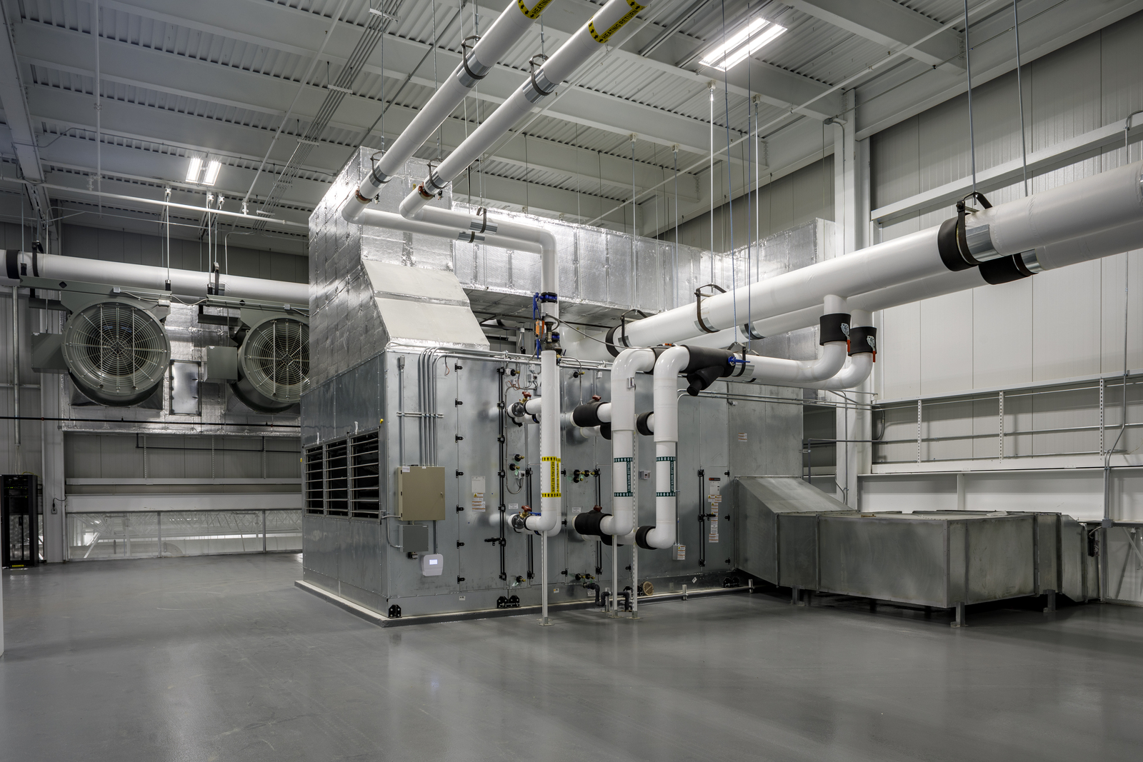 Quality Air was proud to partner with Gentex Corporation on their newest production facility. The building features production areas, office spaces, training rooms, break rooms, and cafeteria. Three 1,200-ton chillers and four six-million BTU boilers serve the production areas and feed 11 air handling units that condition the facility.