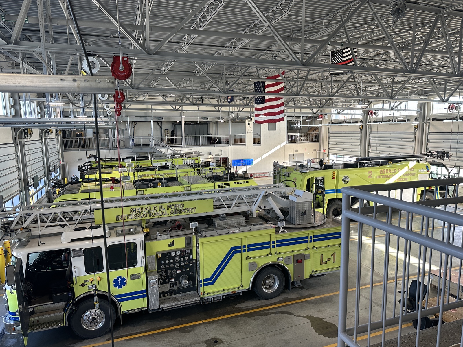 Grand Valley Automation delivered integrated controls for the new ARFF facility at Gerald R. Ford International Airport, including garage gas detection, snowmelt, boilers, and chillers. Special airflow controls were implemented to manage the connection between the garage and living quarters, ensuring safe and comfortable conditions for fire rescue personnel.