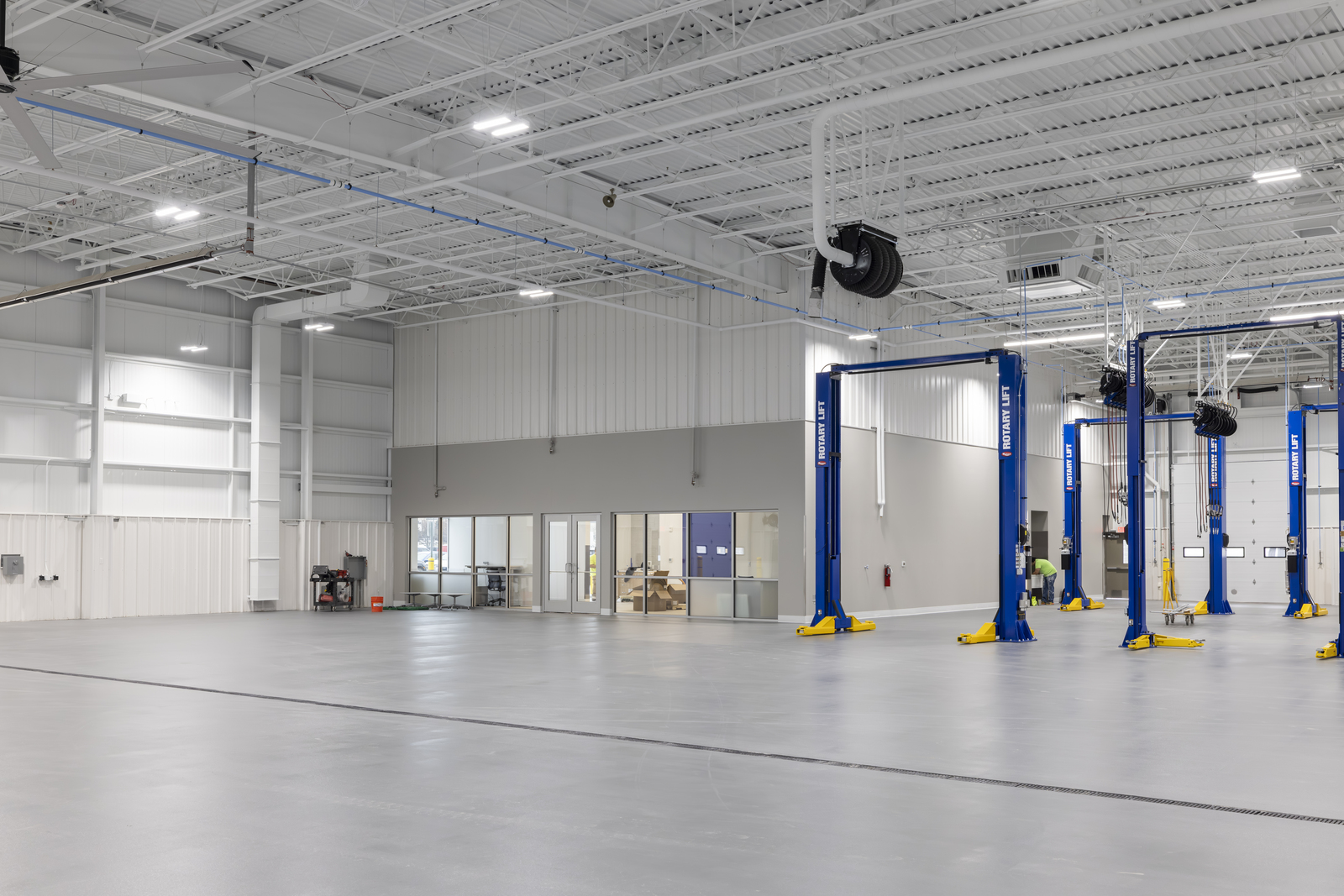 Fox Ford’s new pre-engineered metal building is designed to support top-tier vehicle service with the space, style, and efficiency today’s operations demand. The use of wide bay joists, insulated metal panels, and the mezzanine create a functional building, that looks good.