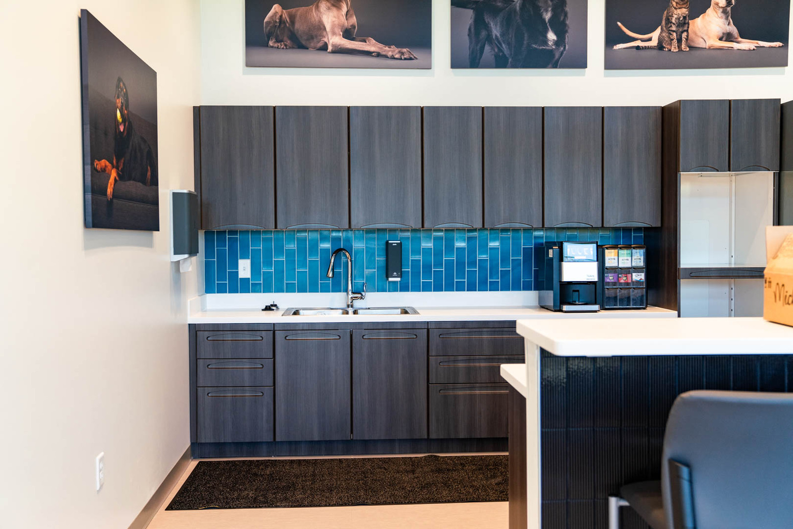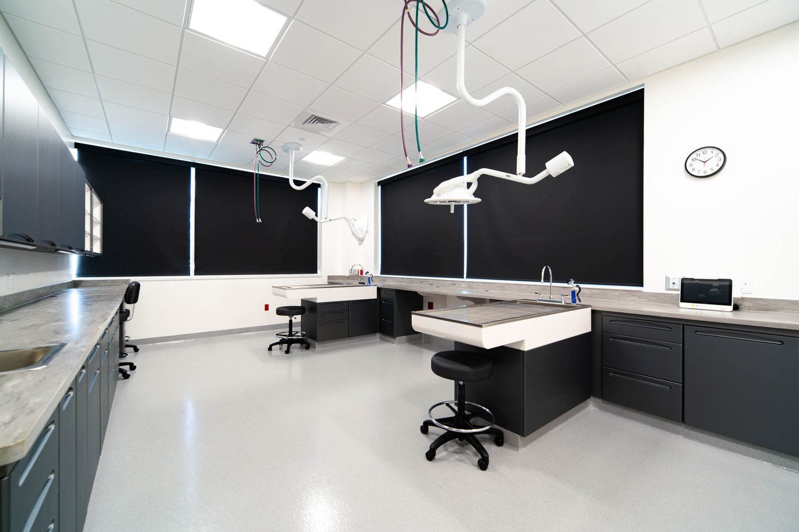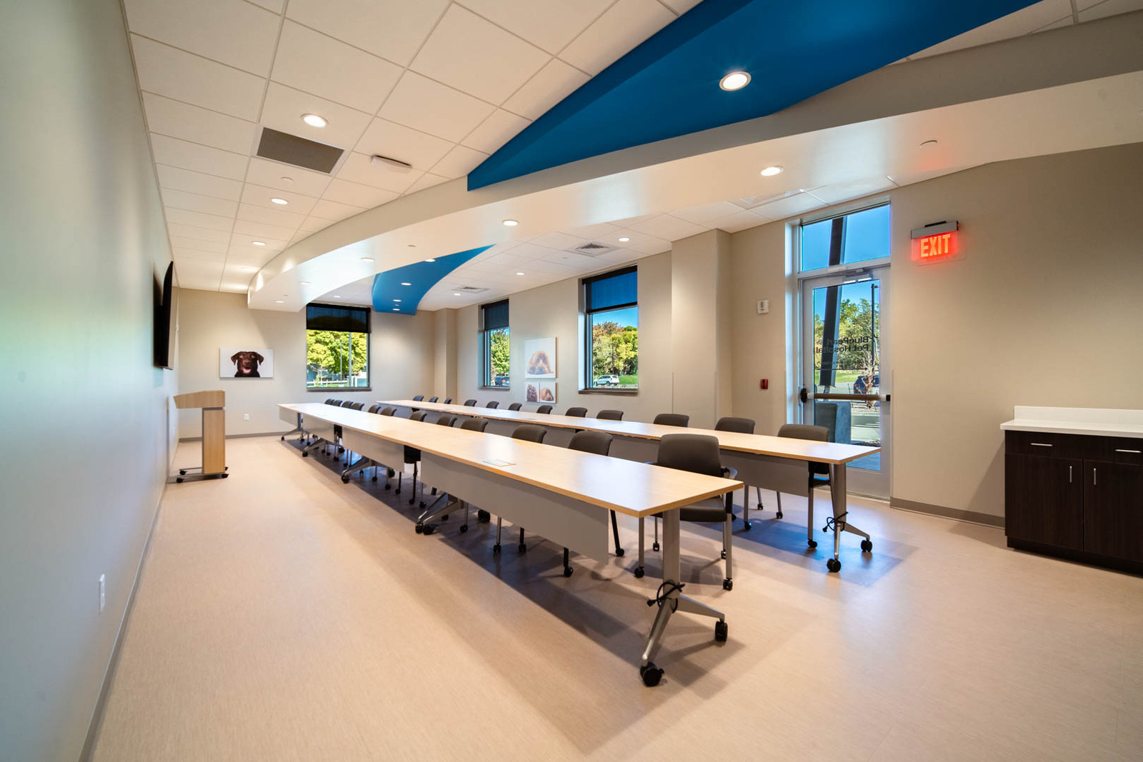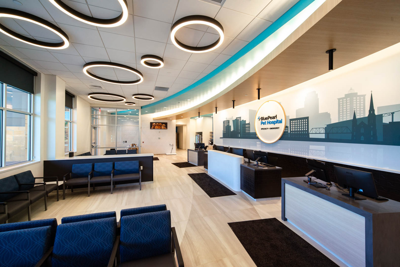 The 25,000 SF building exterior consists of masonry, metal panels, and glass. There is an outside patio for employees to use for lunches and breaks. The interior is designed as a high-end pet care facility. It includes a large waiting and reception area, administrative support areas, a locker room, a breakroom, conference spaces, exam rooms, surgical and operating rooms, procedure rooms, a CT scan, and an MRI room. The project was completed within the 10-month schedule and stayed on budget. All construction was completed to achieve high-end pet care needs, including epoxy floors throughout much of the space for cleanability, durable Midmark cabinets with solid surface countertops, overhead surgical light fixtures as needed, and medical gas and vacuum systems throughout the space to meet procedural and operating needs. The project was constructed over the winter months, so temporary heat was needed to provide a workable construction environment. Regular quality meetings and inspections were performed by the FCI team to ensure the project was built according to plans and specifications.