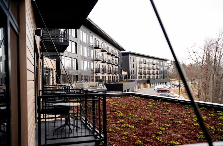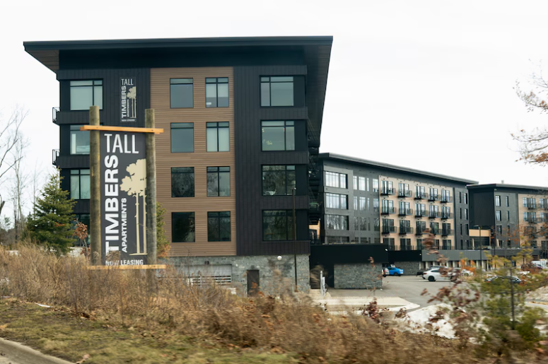 Tall Timbers is a luxury apartment community in Portage, Michigan, rooted in nature. Built on a revitalized brownfield, it features green roofs, underground parking, and elegant design. Surrounded by trees and a natural wetland, it blends sustainability with modern living, while honoring the land’s character and history.