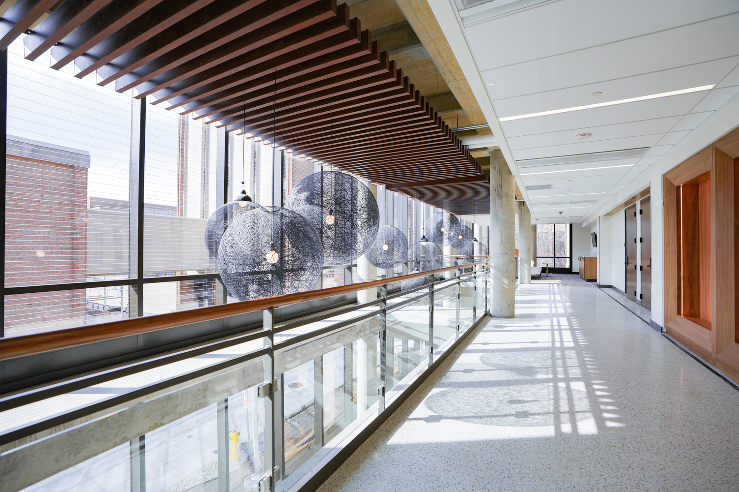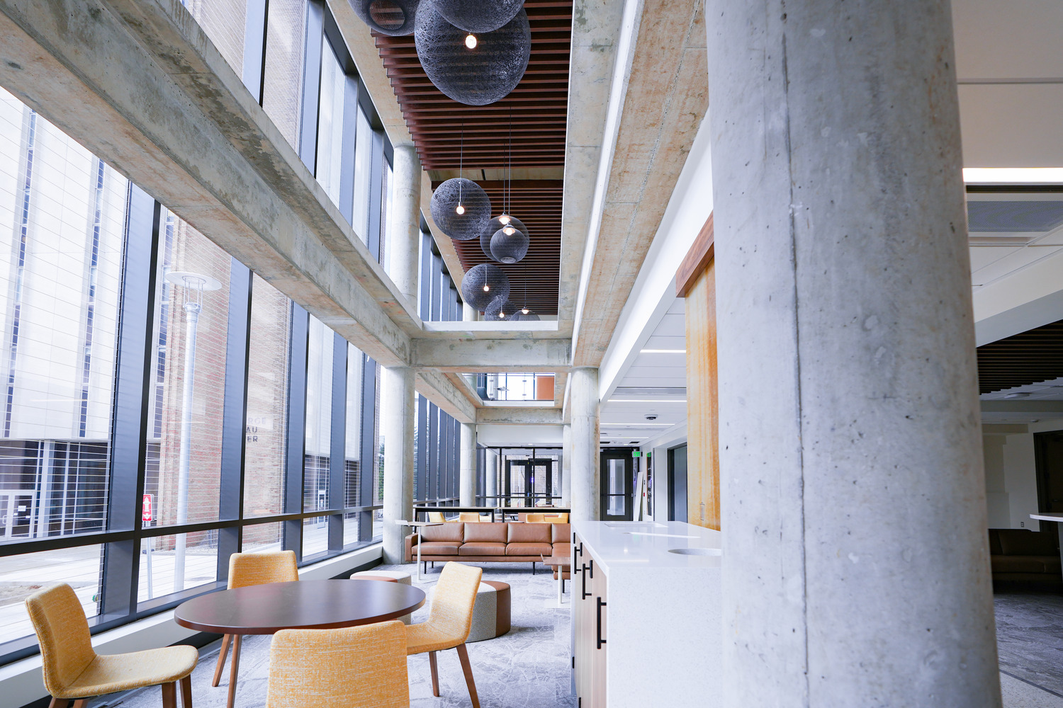 This renovation modernized the five-and-a-half story, 78,000 SF academic building with 11,000 SF of added space. Upgraded infrastructure, high-tech classrooms, flexible student workspaces, and improved accessibility created a state-of-the-art learning environment for the 17,000 students who pass through its doors annually.