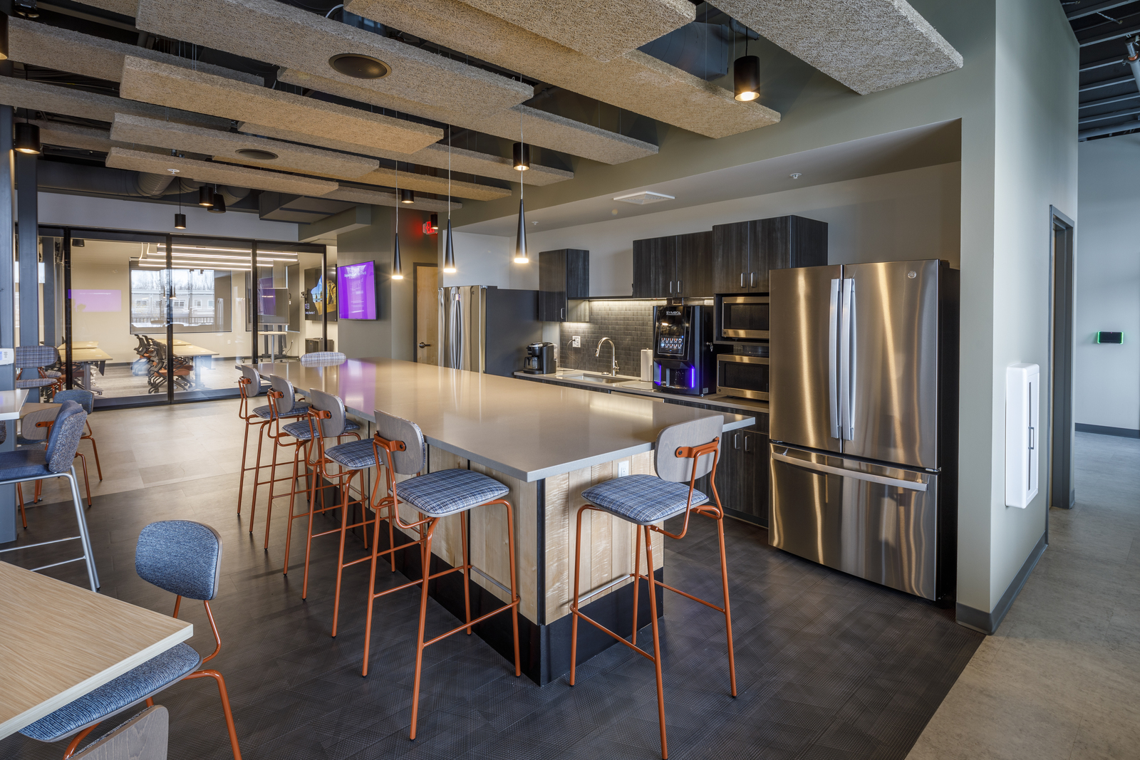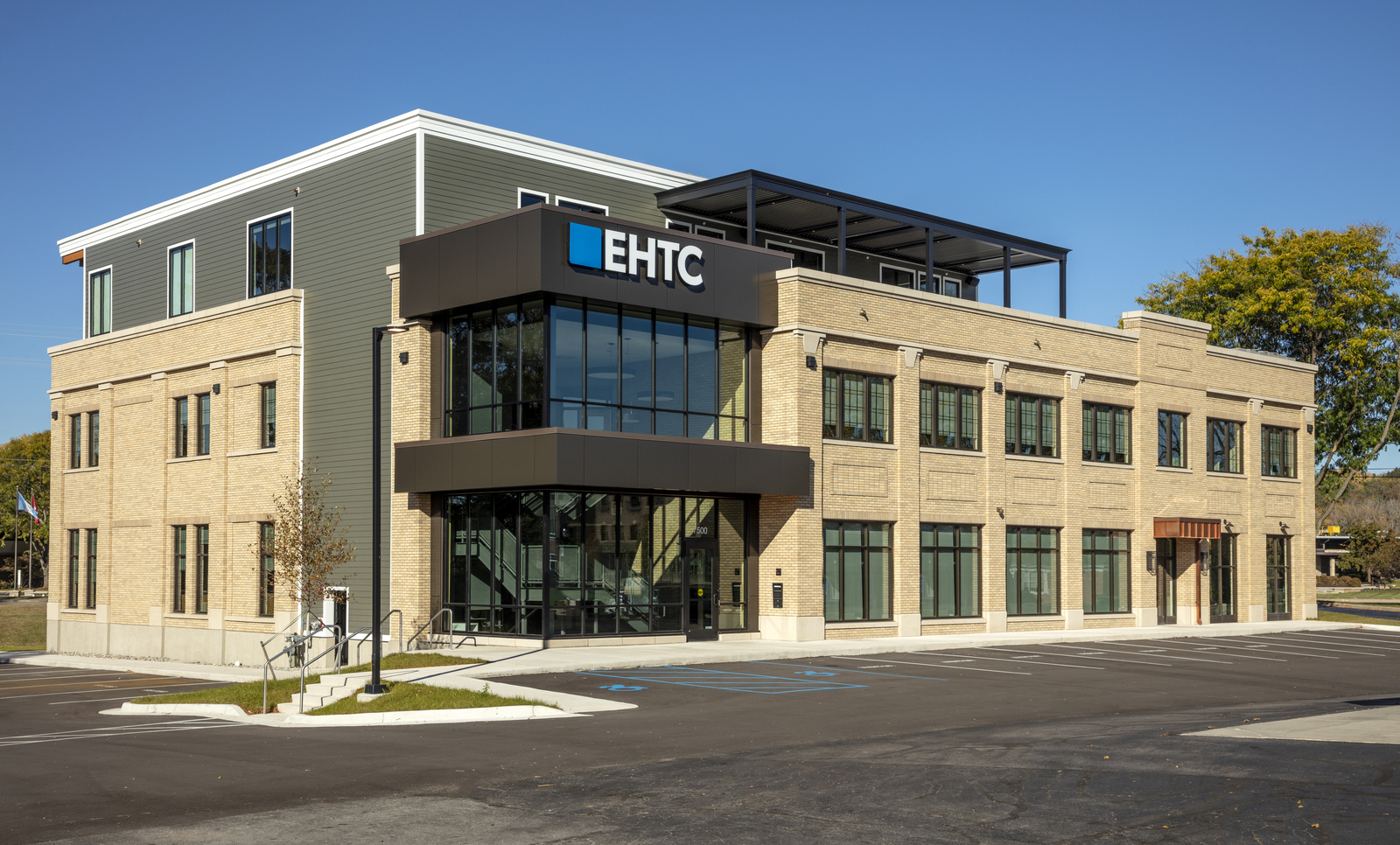 EHTC enlisted Rockford to build a new, three-story headquarters in downtown Ada. The first two floors are comprised of general office space, collaboration areas, and large meeting rooms, while the third floor features a lounge and kitchen area with a private golf simulator and access to a rooftop patio.