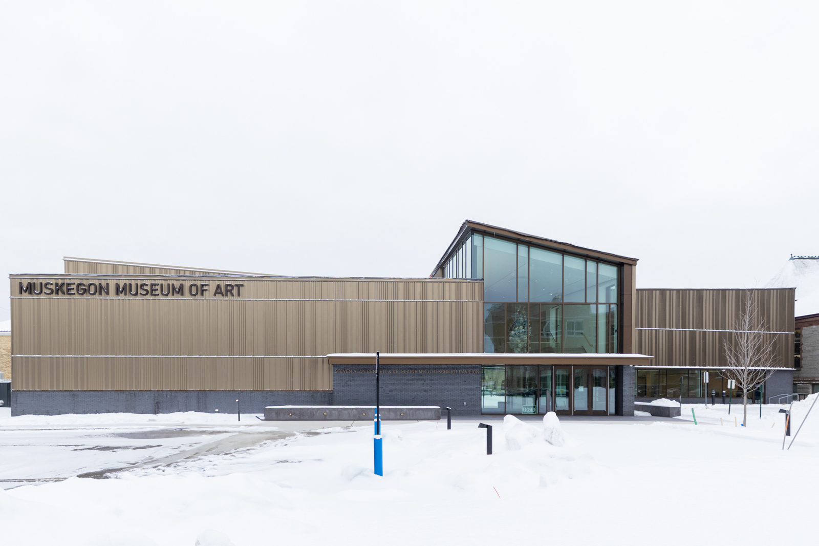 The Muskegon Museum of Art expansion enhances the museum with four new galleries, classrooms, a workshop, and a basement vault. Featuring anodized bronze aluminum siding donated by Lorin Metals, the project also includes a 4,660 SF main gallery—the largest in the U.S.—designed for world-class exhibitions.