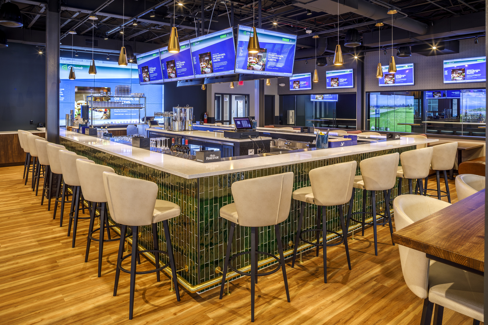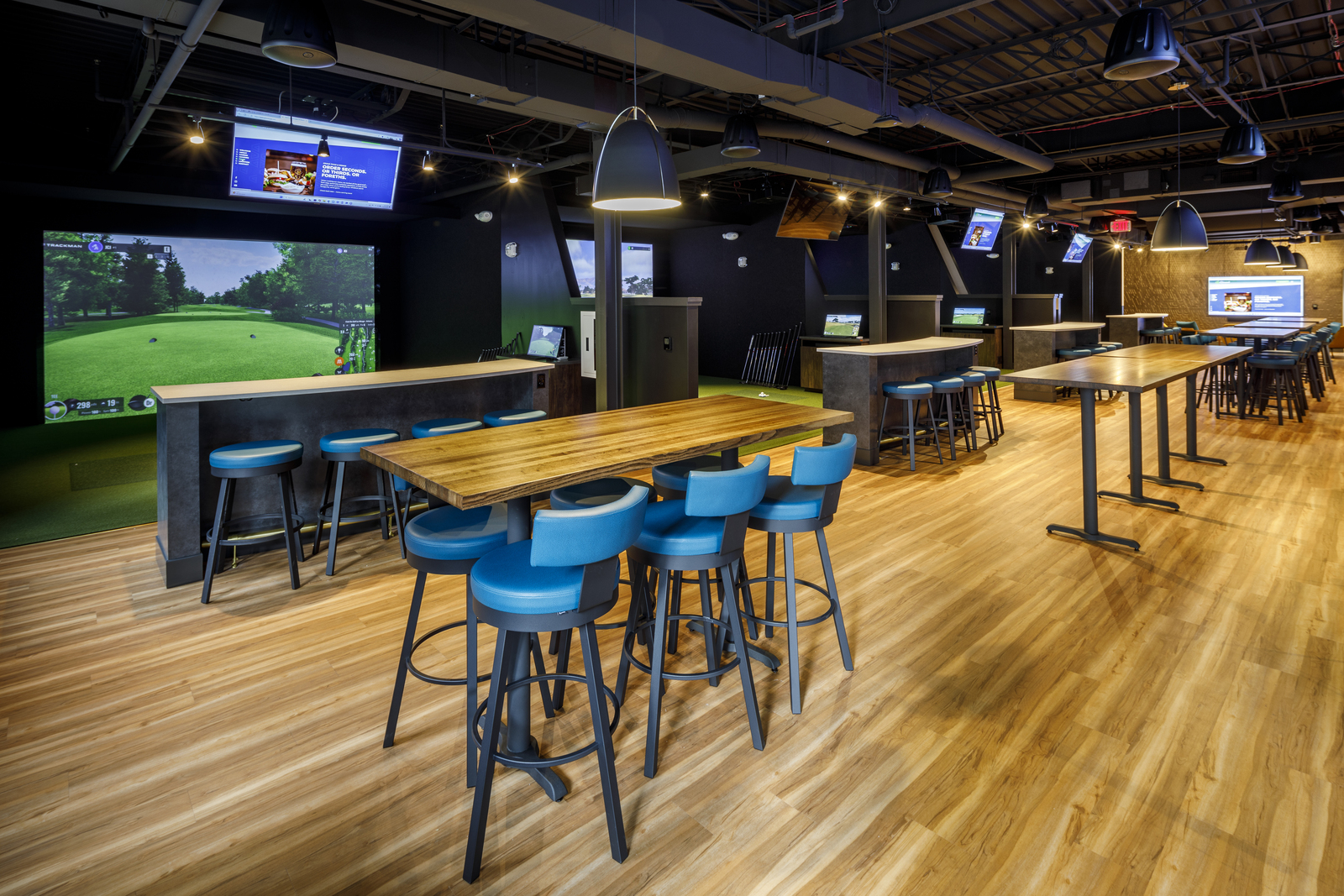 Rockford transformed a vacant downtown Grand Rapids building into a unique restaurant and bar with state-of-the-art golf simulators. The venue, with a 350-person capacity, features two simulators on the first floor and seven upstairs, plus options for virtual sports and games like soccer, tennis, and zombie dodgeball.