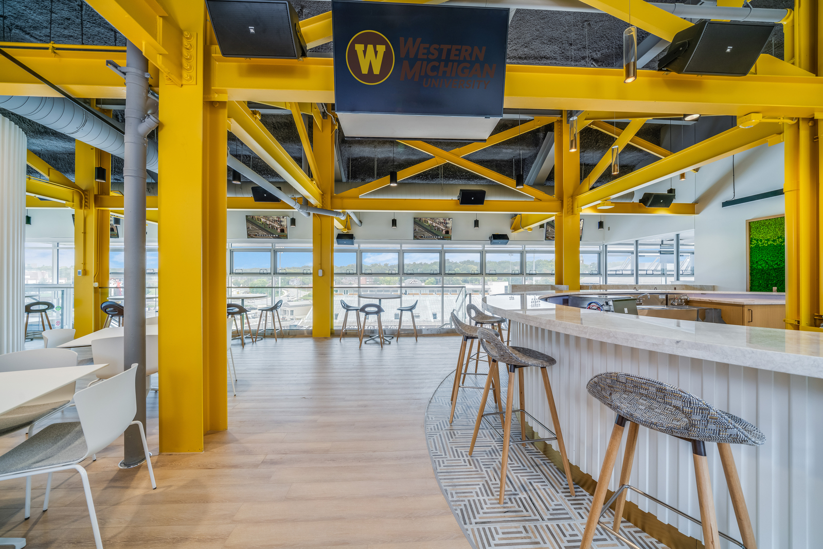 Western Michigan University's Stadium Club transforms a seasonal suite into a year-round venue for donor engagement and university events. Blending contemporary design, sustainability, and accessibility, the space honors Waldo Stadium’s legacy while supporting the university’s advancement goals with flexible seating, premium finishes, and panoramic views of campus and field.