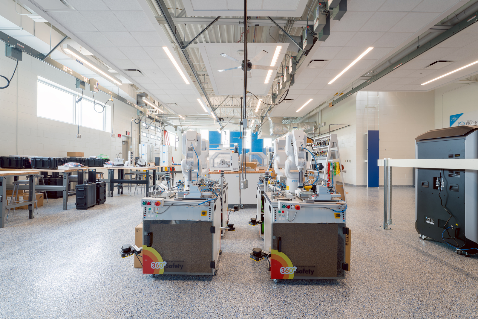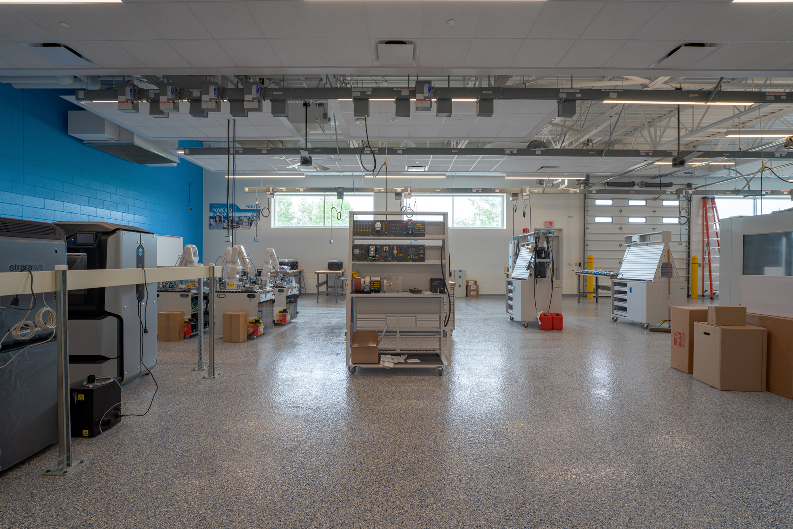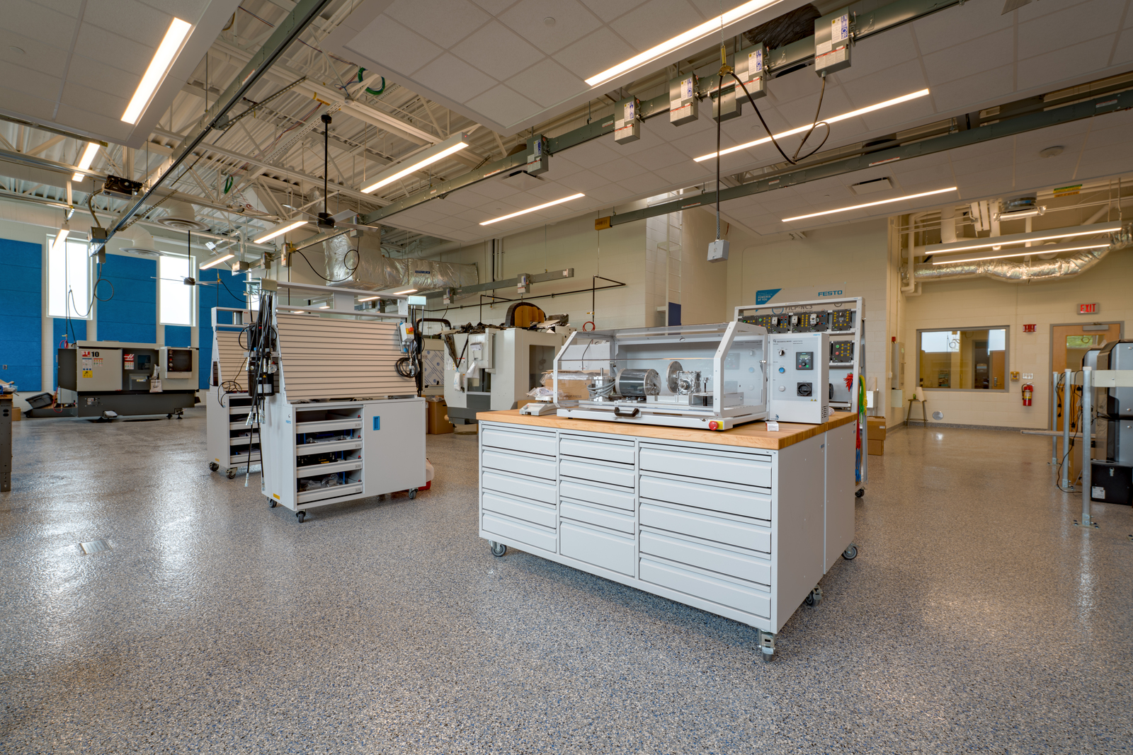 This project modernized the Morey Technical Education Center to Industry 4.0 standards with expanded welding bays, robotic welding technology, and a new Advanced Integrated Manufacturing and Skilled Trades Lab. Featuring CNC machines, 3D printers, and advanced software, the facility supports multidisciplinary training and workforce development for students and local employees.