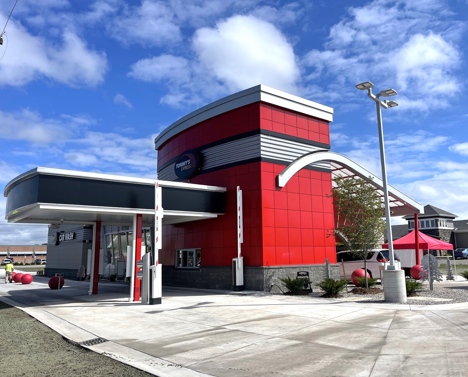 This 5,200-square-foot Tommy's Express Car Wash features a bold design, underground snow melt, and advanced systems for high performance. Strategically planned for efficiency, it delivers innovation and stands out as a premier facility in the community.