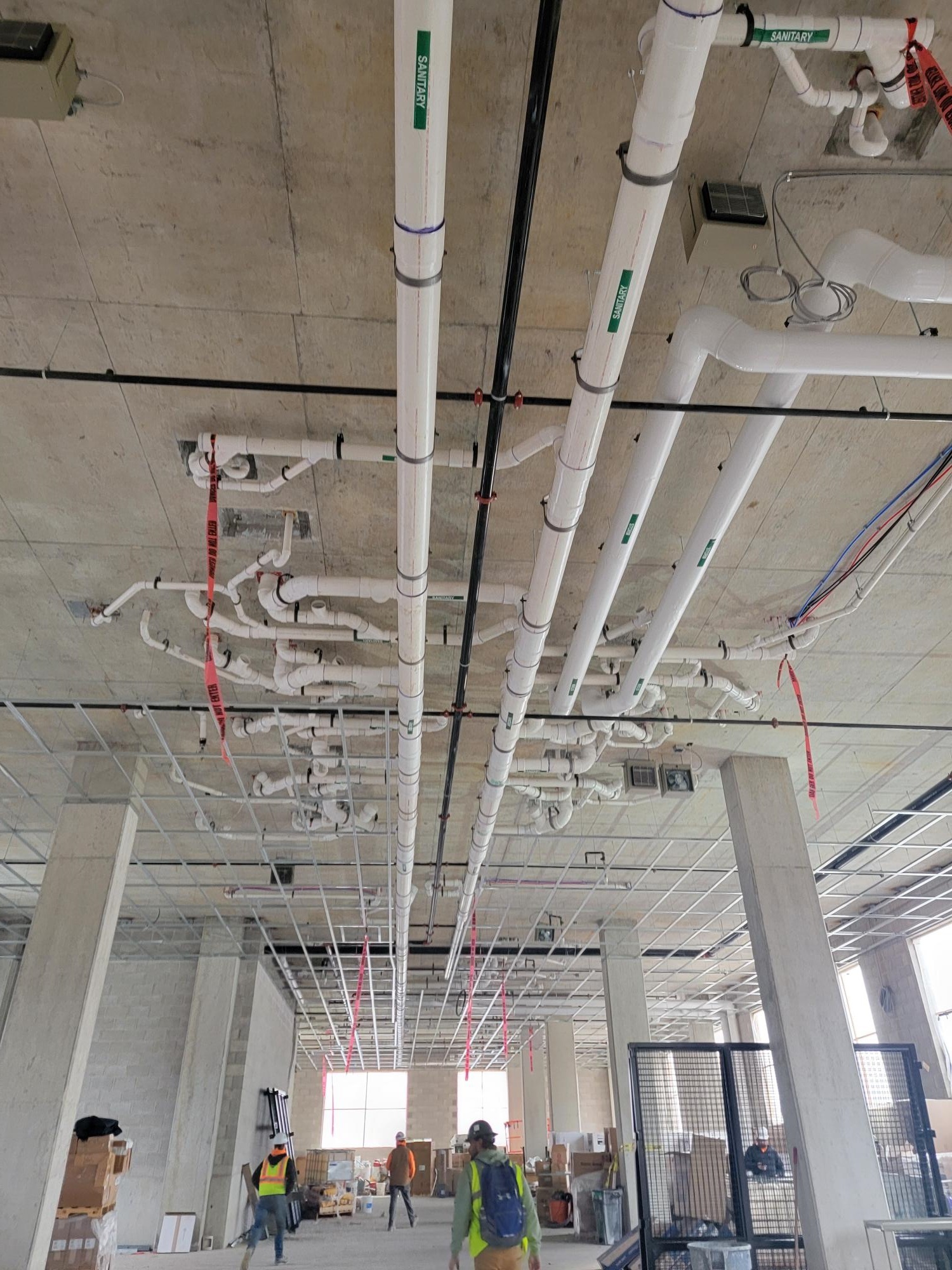 Project features all concrete and light gauge steel construction, 24" post concrete podium with over 200 plumbing penetrations mentioned above, 12 stories with 727 bathrooms, engineering issues mid project, we had to assist with re-design; >59000 man hours crews up to 30, 674 RFI's compiled, buck hoist, & challenging site.