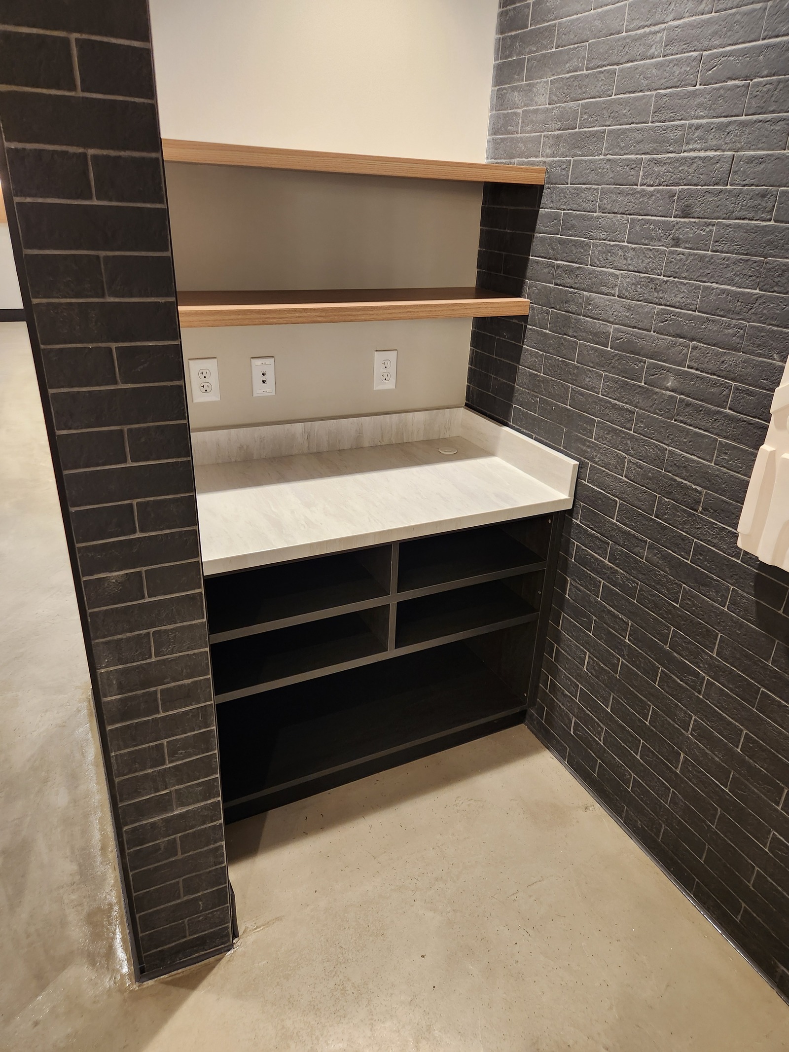 Working under a highly compressed schedule in a fully operational resort setting, our team delivered precise, high-quality work using durable, design-forward materials, including Formica Natural Grain laminate and Hanstone Quartz. The project required close coordination with the general contractor, Grand Traverse Construction, and other trades to ensure seamless installation with minimal disruption to resort guests.