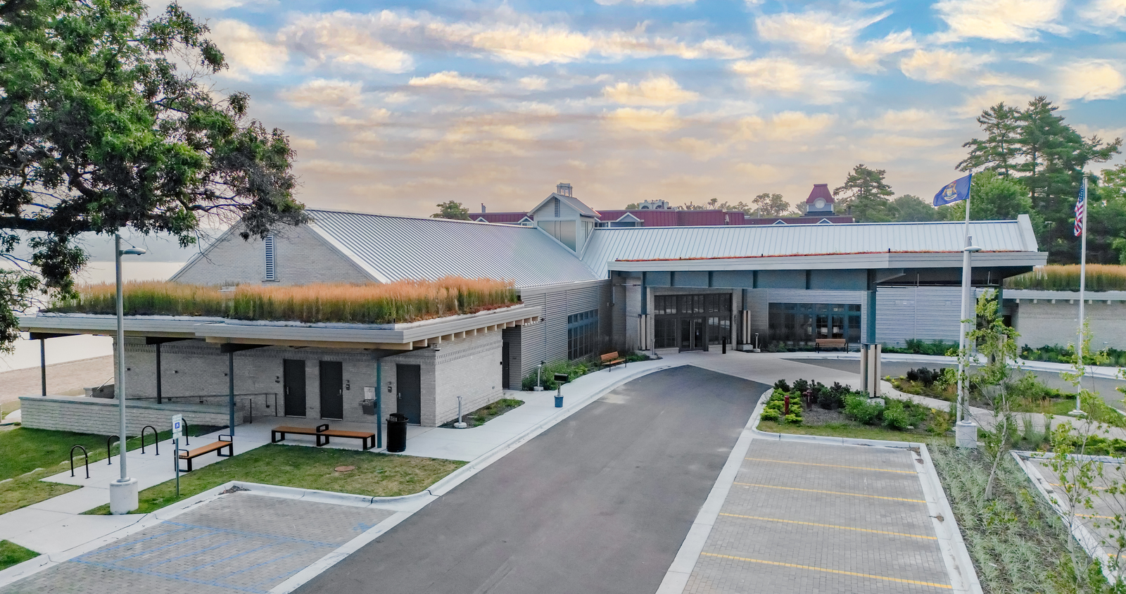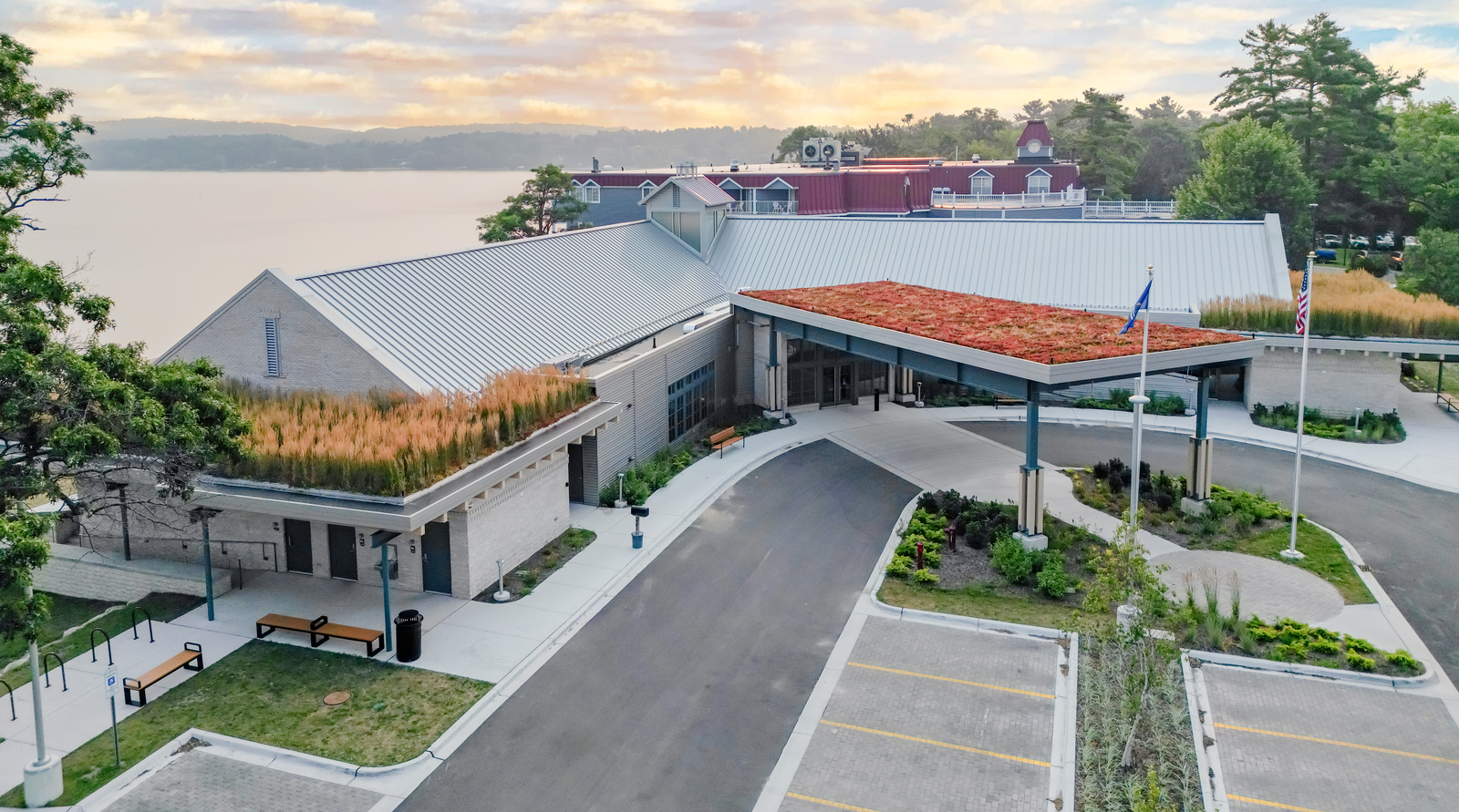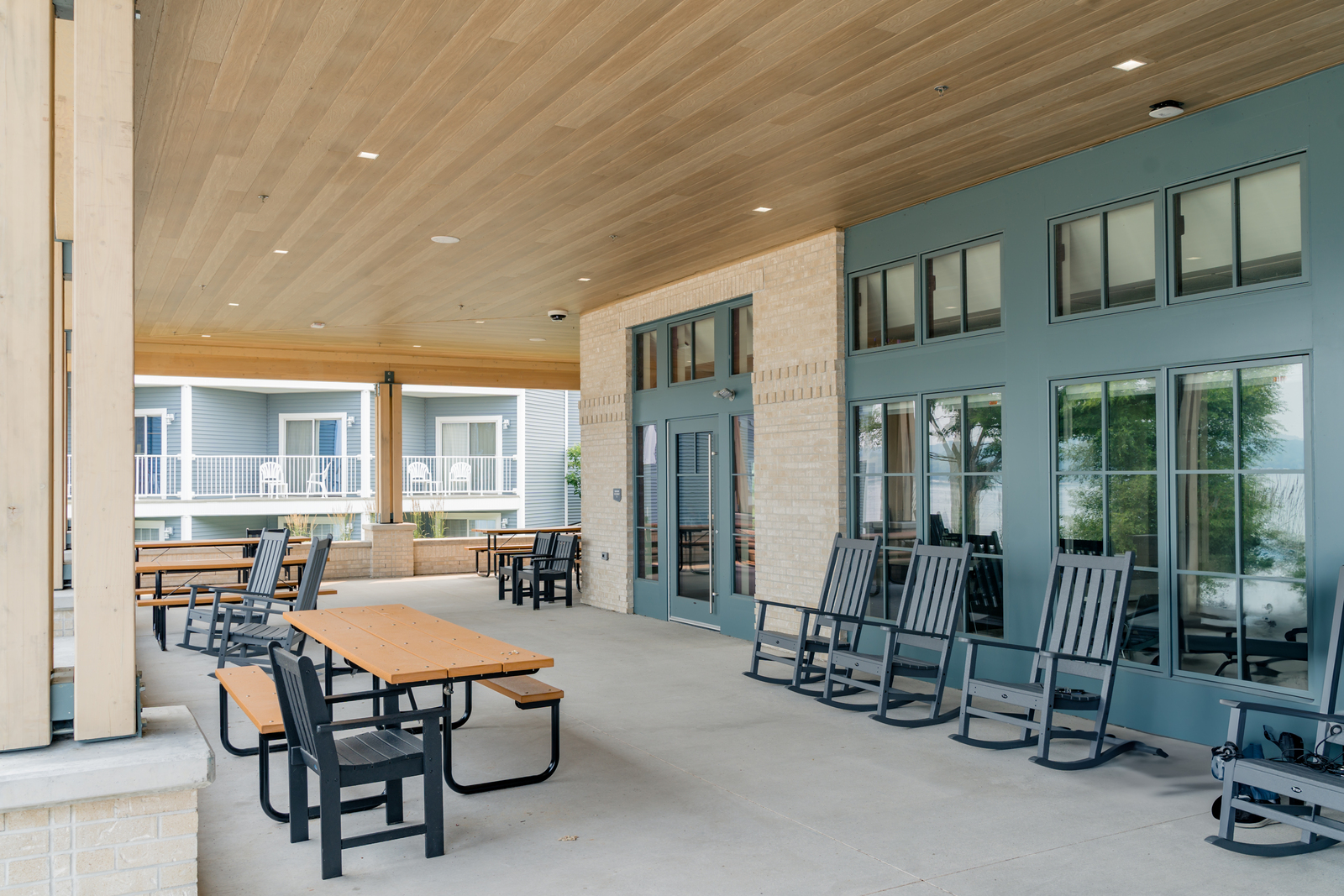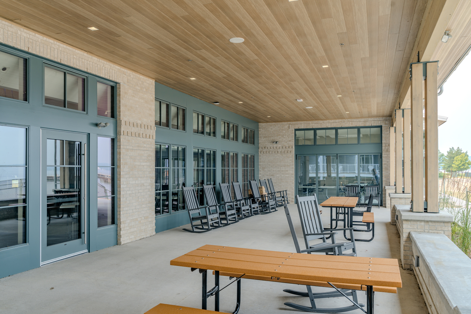 Inside, high end finishes with trim and window details really pop with the different varieties of base, casing, wood wall paneling and flooring types. Beautiful wood doors with black hardware sync with the black sliding patio doors that overlook West Grand Traverse Bay. The “wave” ceilings in the main corridors are a unique feature that accent the walls and flooring.