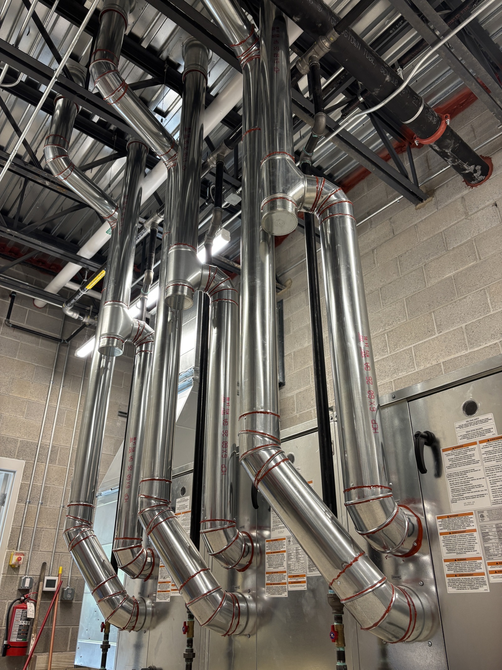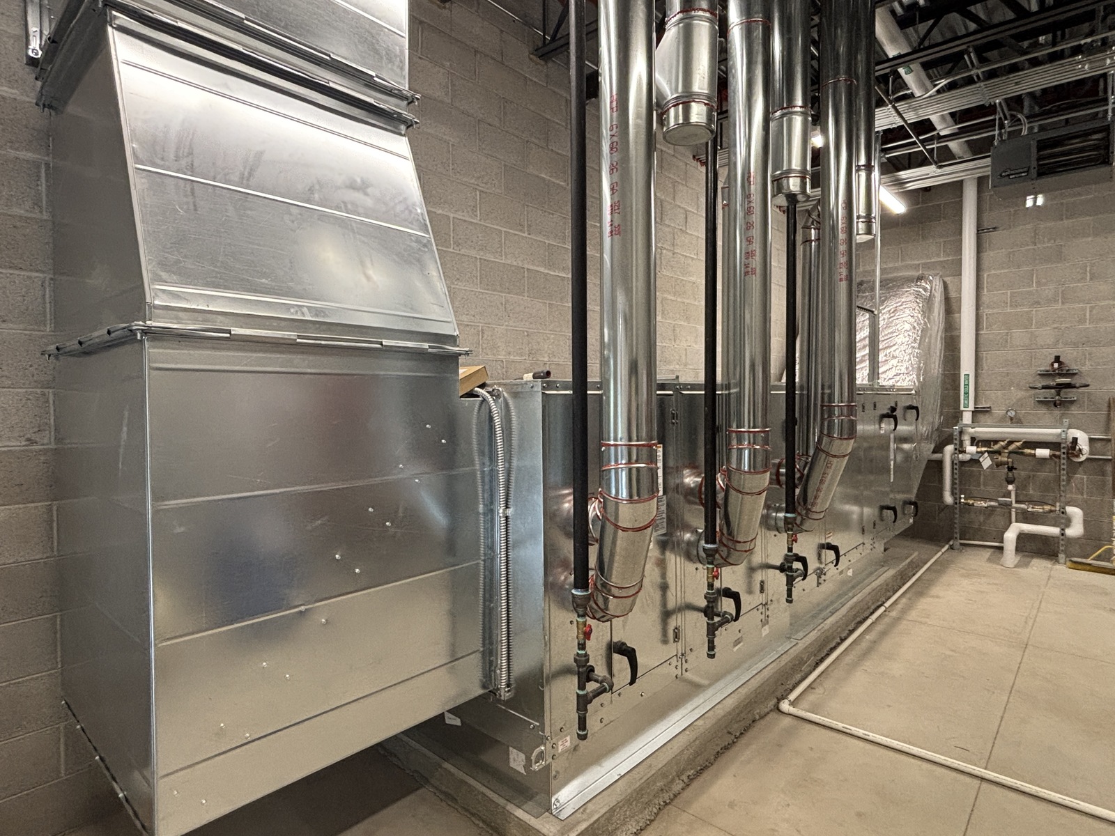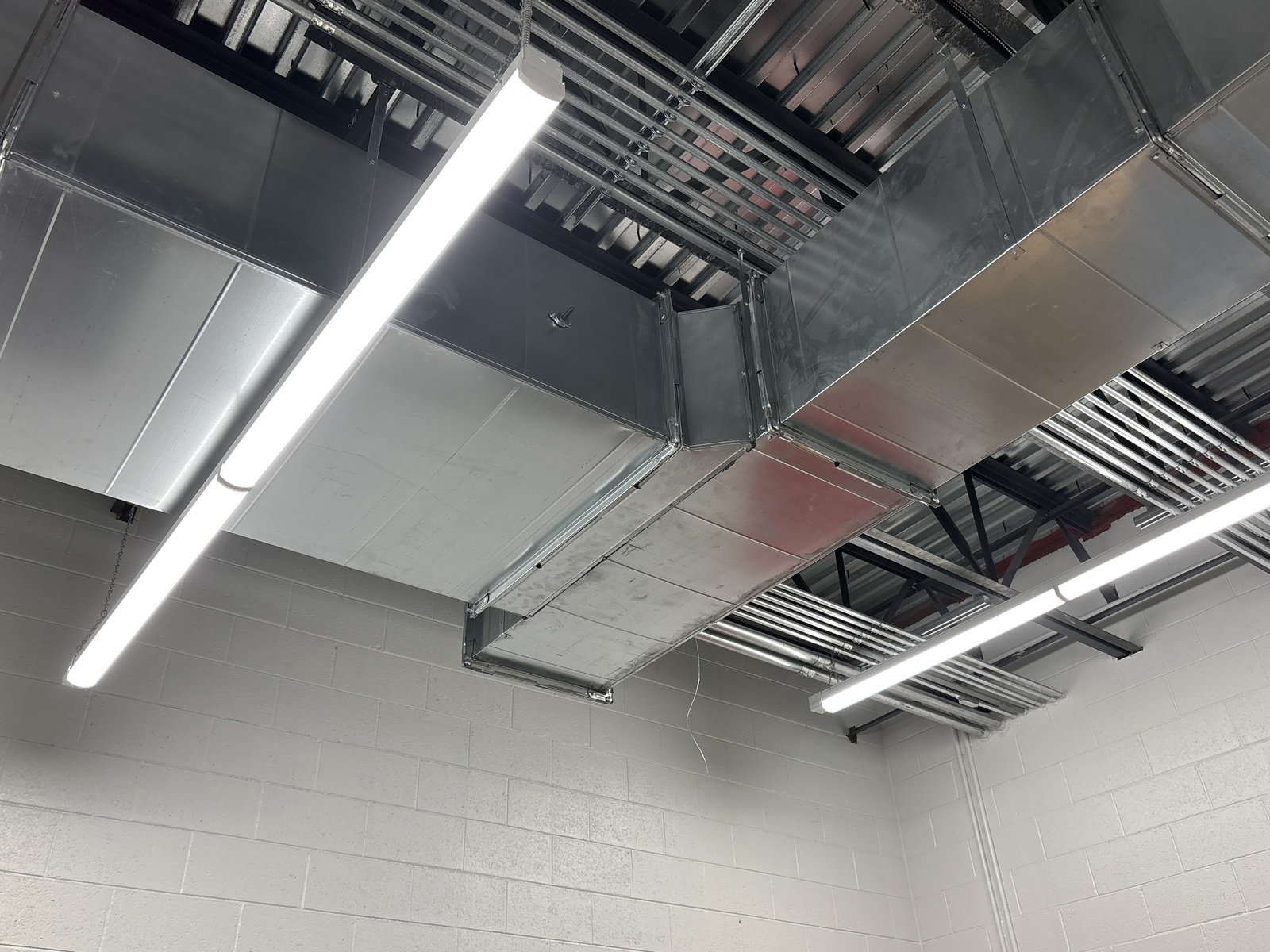 The Northwestern Michigan College Aviation Hangar expansion was a milestone project designed to support the college’s mission of training future aviation professionals. The HVAC scope delivered innovative and highly efficient systems tailored to the unique demands of an active hangar space. From underground BlueDuct designed for durability and air quality, to a 10,000 CFM make-up air unit, advanced exhaust systems, infrared tube heating, and large-scale circulation fans, every component was engineered to provide comfort, safety, and reliability. The installation reflects not only technical expertise but also the adaptability required to overcome equipment delays and site challenges, ensuring a state-of-the-art environment for aviation education.