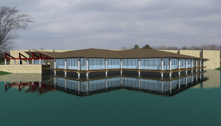 New 35,000 square foot headquarters for a construction company that services national retail clients. A low corner of the site was excavated to not only create a pond that abuts the front of the building, but to provide the fill needed to raise the remainder of the site to the proper elevation. A twenty foot tall, three hundred foot long curved masonry wall separates the offices from the shop facility in the rear. Our research came up with a manufactured product for this wall of varied size and proper coloration to satisfy both the Owner's budget and the Architects' aesthetics.