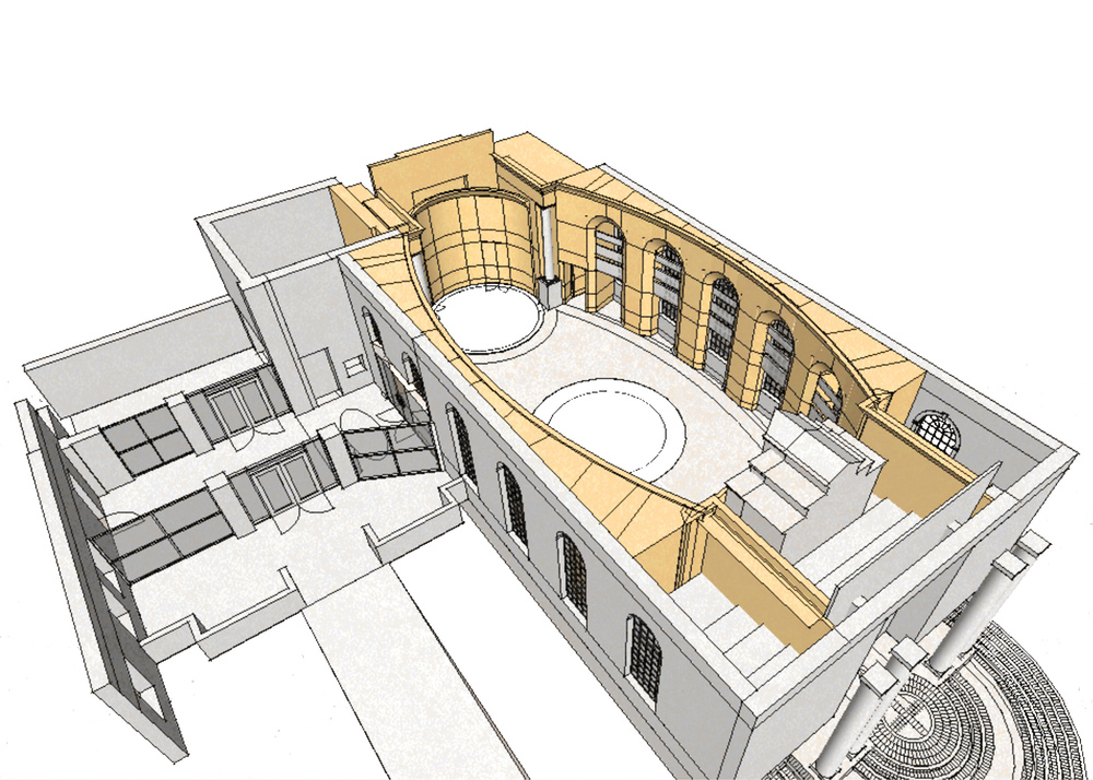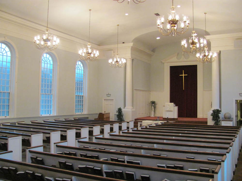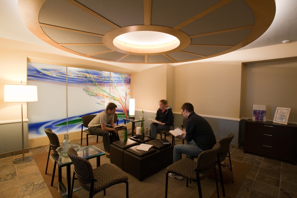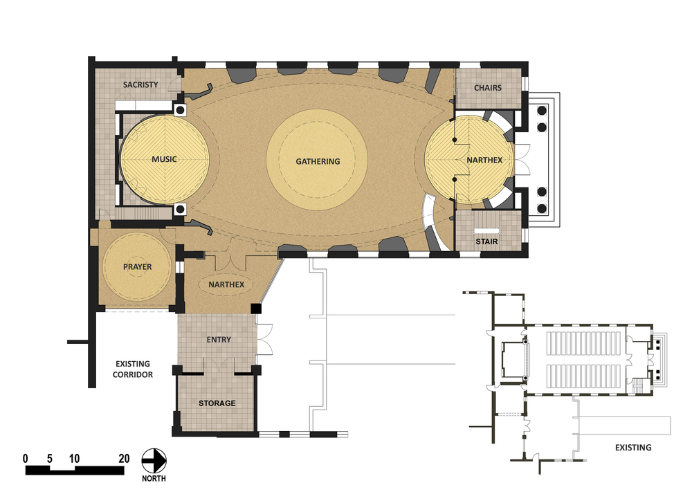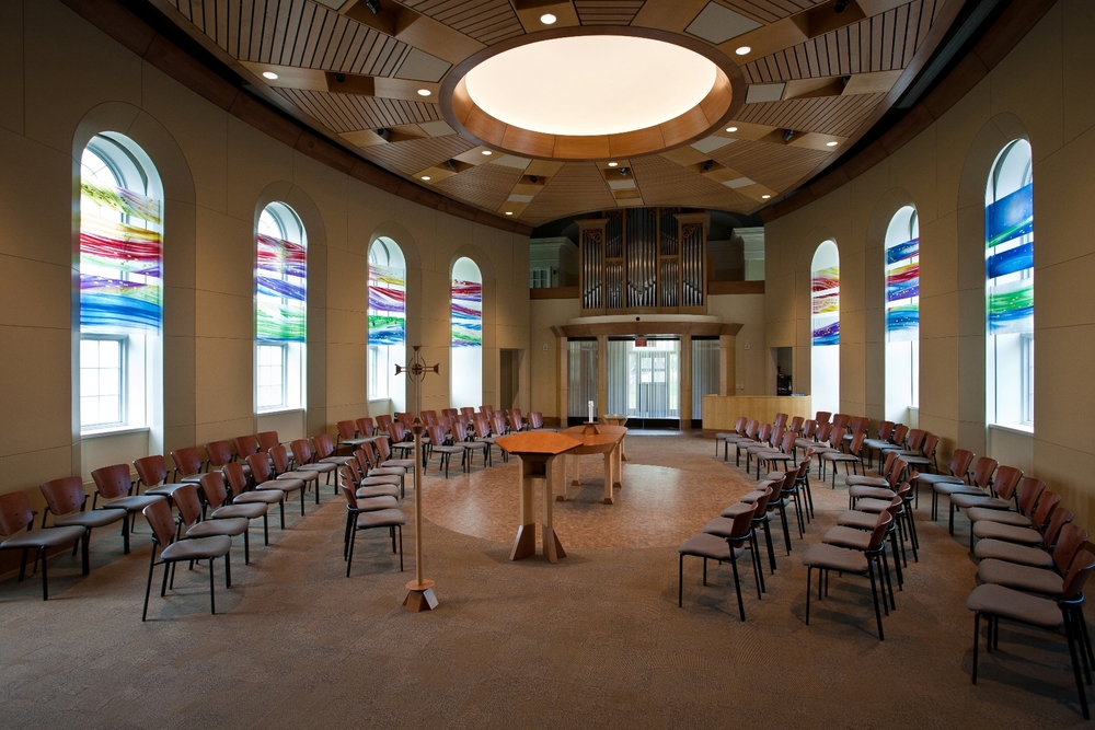 Renovation of traditional colonial chapel into flexible, modern, state-of-the-art "worship lab" for deeper theological meaning, inspiration, liturgical creativity, and multiple types of assembly including lecture, wedding/funeral, and seating in the round, in rows, and antiphonal arrangements.