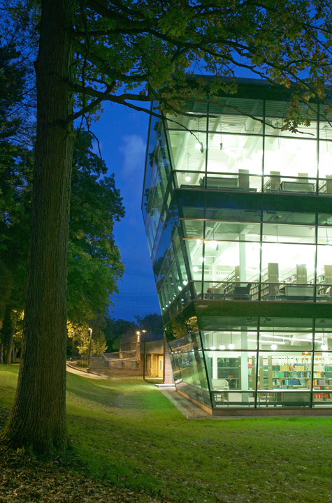 Aquinas College students returned to campus to find a new library that will serve as a gathering place for students, as well as a campus destination. The new Grace Hauenstein Library includes 20 public access computers, 6 group study rooms, a digital editing suite, separate circulation and media checkout desks, open media stacks, and an archives research room with special collections. The facility has wireless technology as well as adequate parking. The library itself is very aesthetic, with views of the surrounding trees and campus. It is designed for U.S. Green Building Council LEEDTM certification. The facility highlights several sustainable features such as natural daylight, low-emitting VOC materials, and a photovoltaic system generating about five percent of the building's power.
