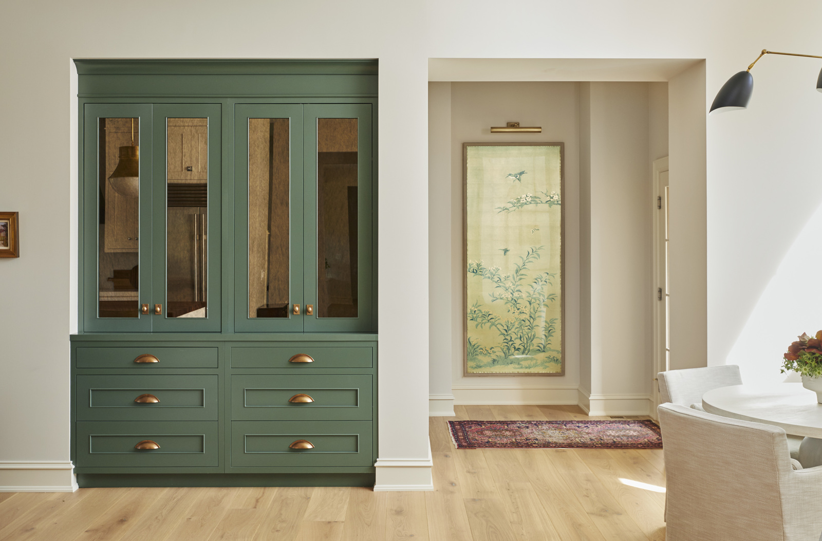 We did a full renovation of this Kitchen, updating it with a classic white Kitchen, featuring a dark green built-in pantry. We removed the existing butler's pantry, and created a new space, accessed by this archway. Finally, the adjacent breakfast area was updated to finish off the project. Photos of the "before" space are included in the Attachments.