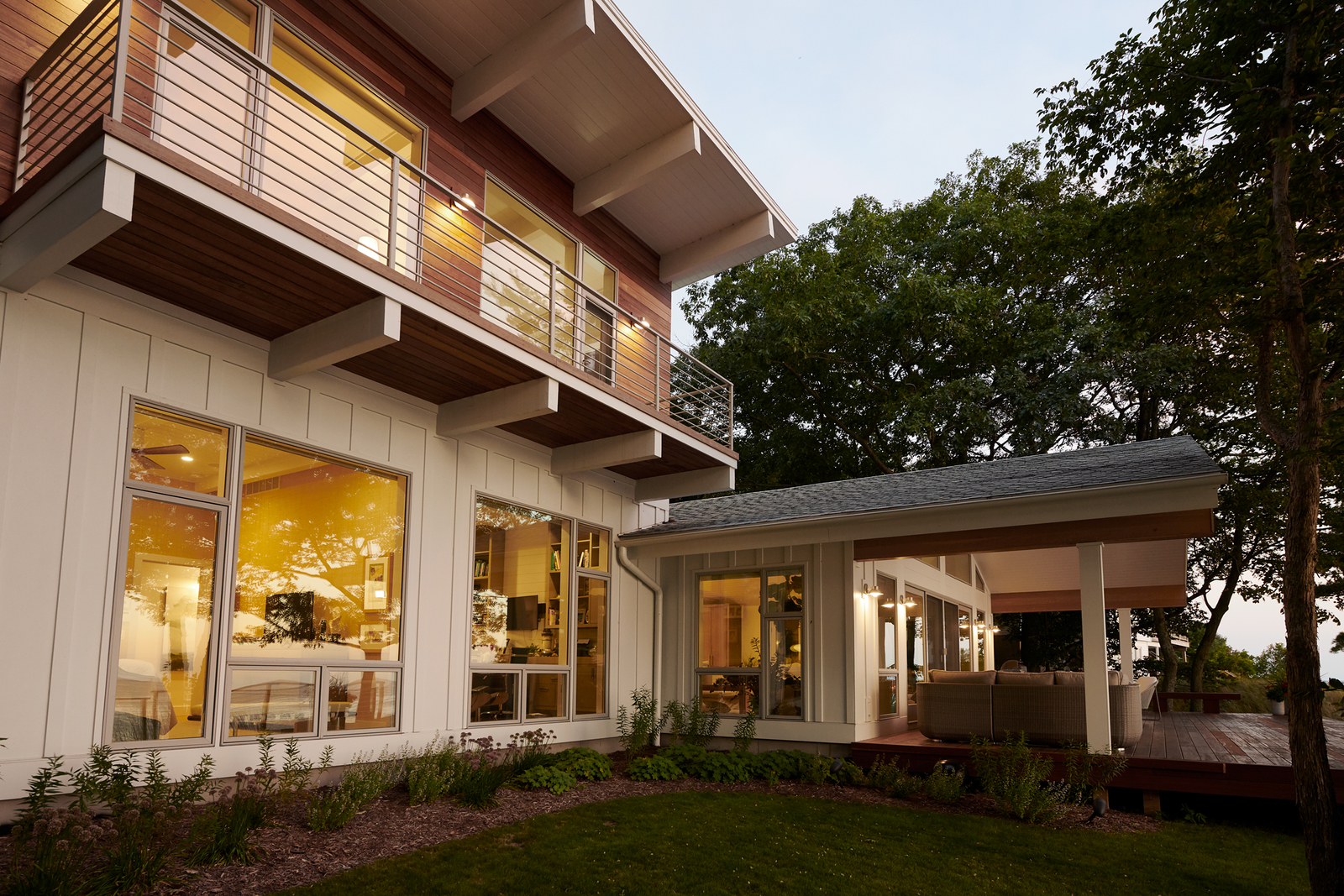 This home deserves recognition as a model example of how to modernize sustainably. We call it The Aerie because bald eagles can often be seen sitting in trees alongside the house.