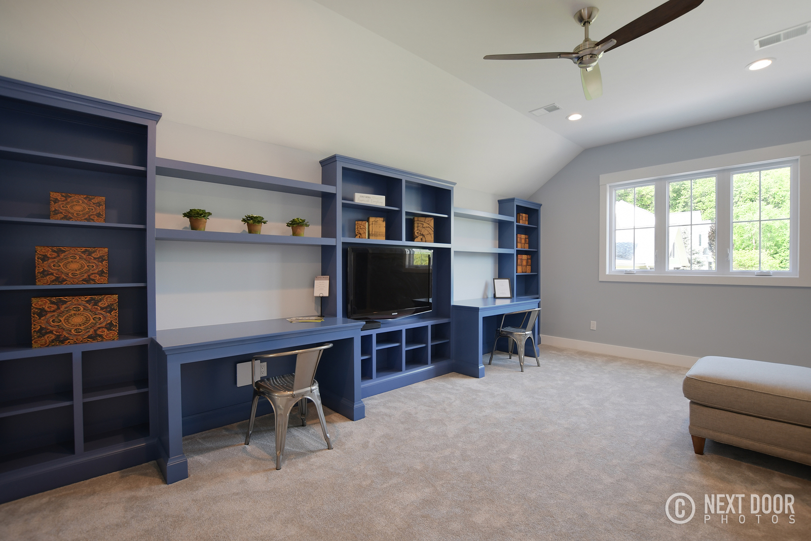 -Exquisite ceiling and trim elements, including coffered and barrel ceilings, wall panels and lower level media feature wall