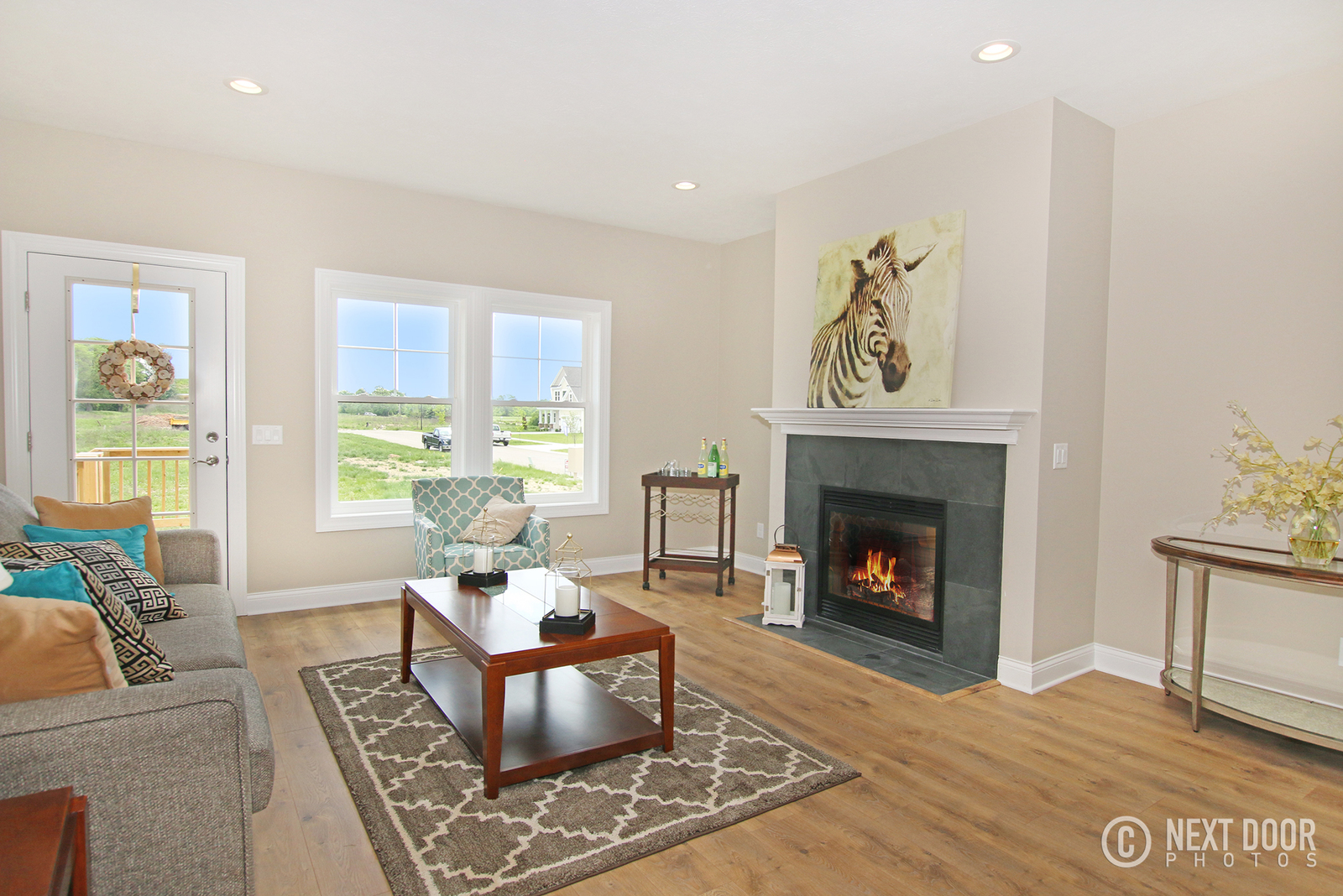 9 foot ceilings in 1st Floor with vent less gas fireplace in Great Room ; with large rear wood deck