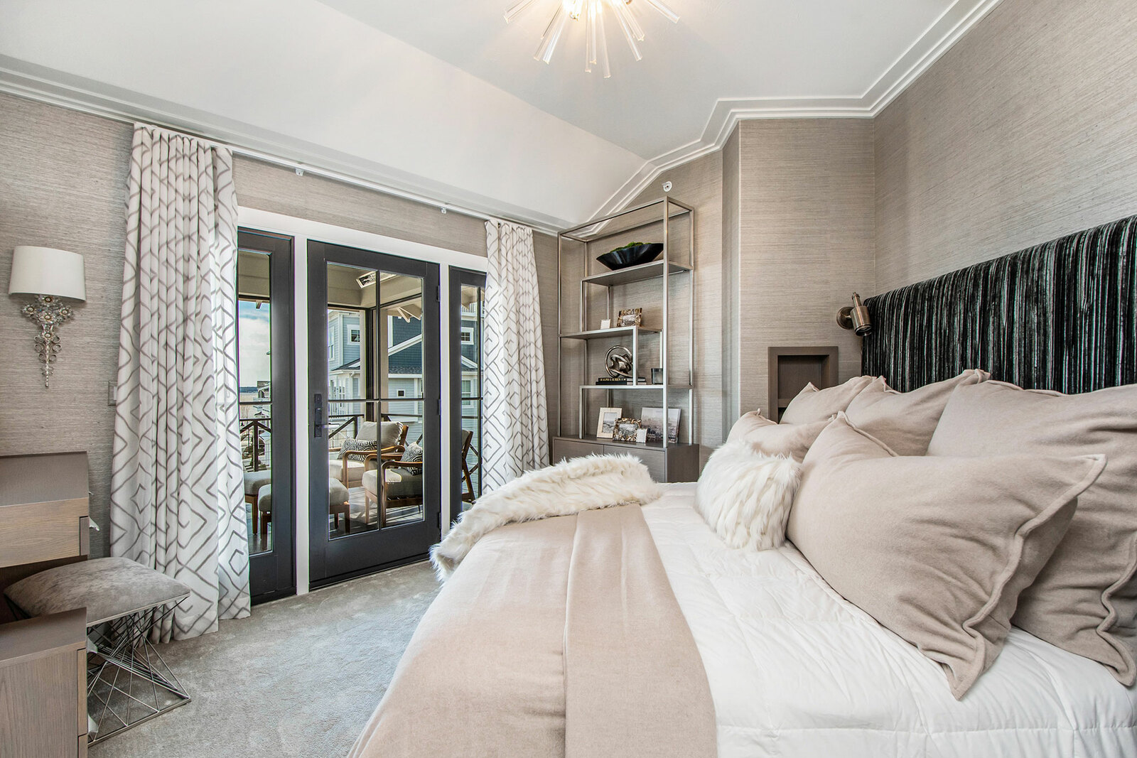 The 4th floor features an additional sitting area with a tv that raises out of a custom cabinet partially hidden into the floor system to allow for further light and window exposure when the tv is stored. A supplemental kitchenette bar area, an owner’s suite laundry area, and an exquisite Master Suite wing with all the expected amenities. The ceiling details and wallpaper offers texture and clean lines again which emphasize the details on every level.