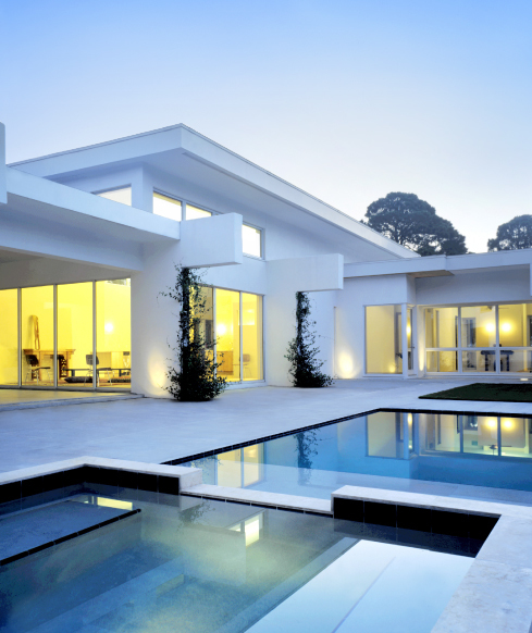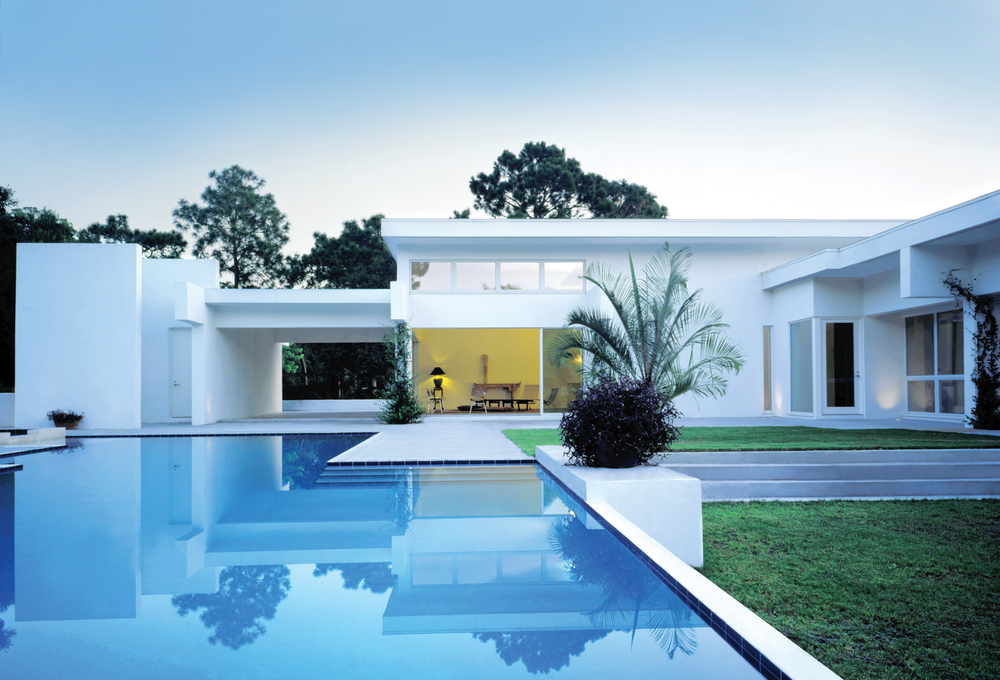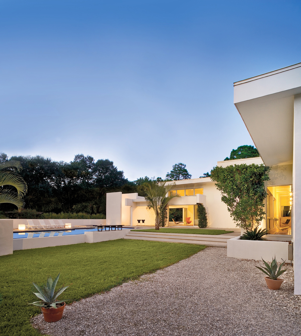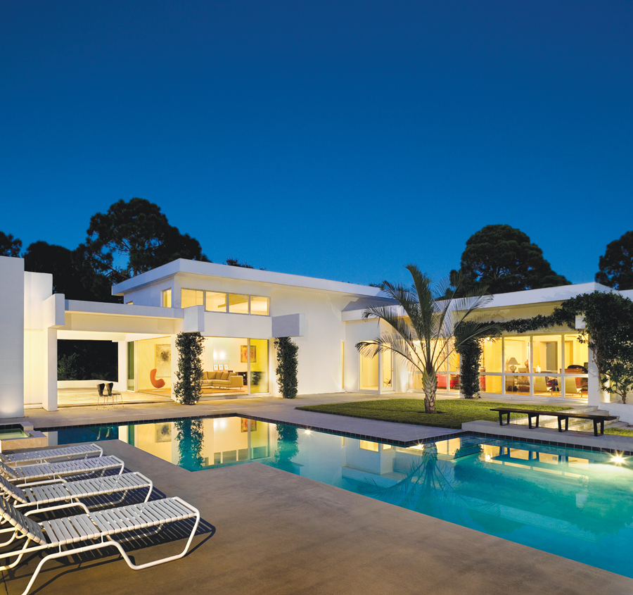Situated on two-plus acres, this 3,200 SF Sarasota residence was designed to reflect the Client’s desire for a minimalist home they could equally live in and entertain. The concept of the layout was to create a separation of these functions with architectural elements but to tie the design together with light, form, and repetition. The floor plan reflects these considerations with a distinct delineation between public and private areas. The uncluttered design and palette of simple finishes creates a sense of interior and exterior space that is wide open without ignoring privacy. Further addressing the Client’s request for seclusion, the home intentionally faces away from the busy street and onto an open pool terrace. Through the use of non-traditional building materials the Owner’s request for an energy-efficient home was achieved. The result is a home that has been awarded the Florida Power and Light Gold Star certification for energy efficiency.