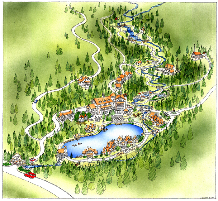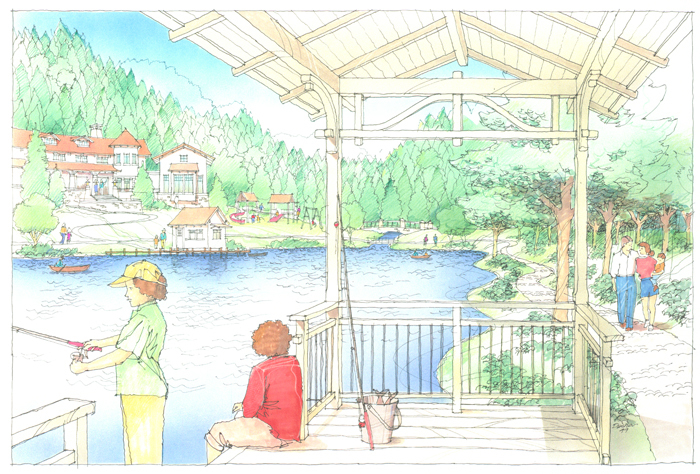 Deliver the Dream is a conceptual design for a mountain retreat and enrichment center. The purpose of the unbuilt community was to provide children, families, and individuals in crisis with irreplaceable experiences and support. The center was intended to serve as a haven for those who have experienced serious illness and provide an opportunity to regain strength, mend spirits, and escape the routine of their daily lives by hiking, horseback riding, boating, and enjoying campfires.