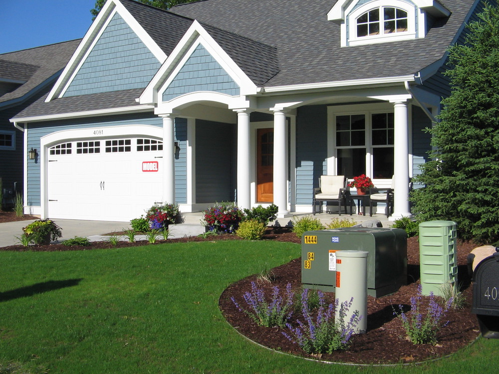 With its individual condominium homes lining just two exceptionally private cul-de-sacs, Gables on the Green is a wonderful neighborhood tucked within the greater Thousand Oaks community. Due to careful planning, every one of the sites has million-dollar views of the award-winning golf course or wooded landscape. Each home is situated strategically to maximize privacy and take advantage of the outstanding natural beauty of the land. At Gables on the Green, homeowners have their choice of three different floorplans with either daylight or walkout lower levels that can be customized to meet their particular taste and lifestyle. Anticipate specialty built-ins, custom trim, and upgraded features and finishes. Homebuyers are encouraged to add their unique ideas to the drawing board. Ledger Builders bring the custom home experience to condominium living. Summit Landscape is contracted by Ledger Builders as the landscape and irrigation contractor for the project.